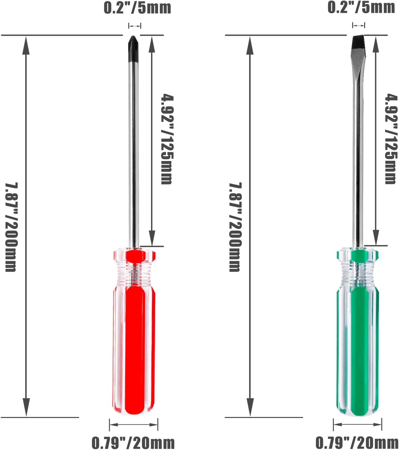 【Multiple Uses】4.92"/125mm shaft length, total length is 7.87"/200mm. The special design of the screwdriver tool set, suitable for ordinary homes, schools, offices, construction sites and other places in need of repair.