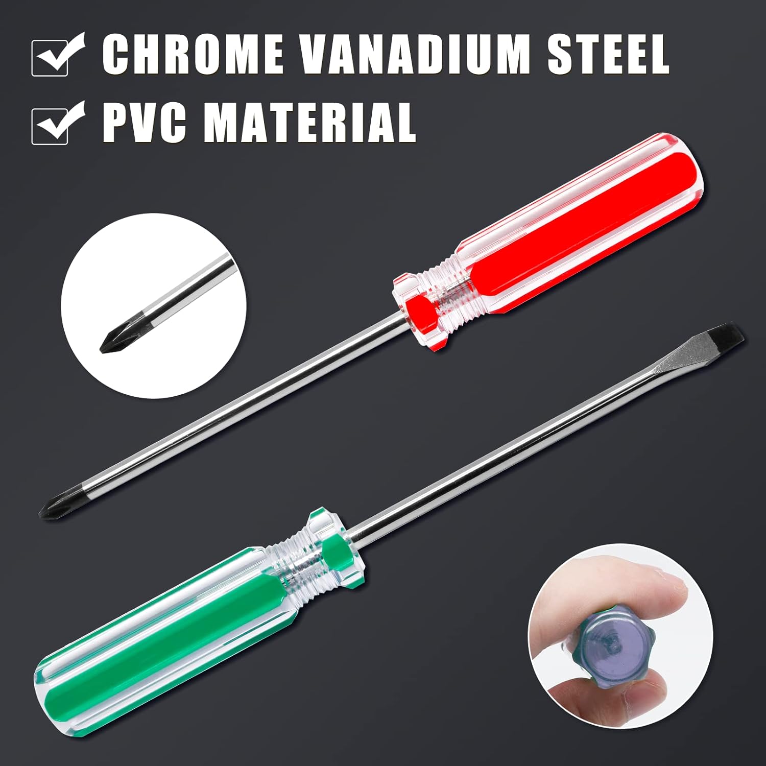 【Superior Material】The transparent plastic handle is made of high quality PVC material, the short-handled screwdriver is made of chrome vanadium steel and is designed to be very lightweight and easy to use.