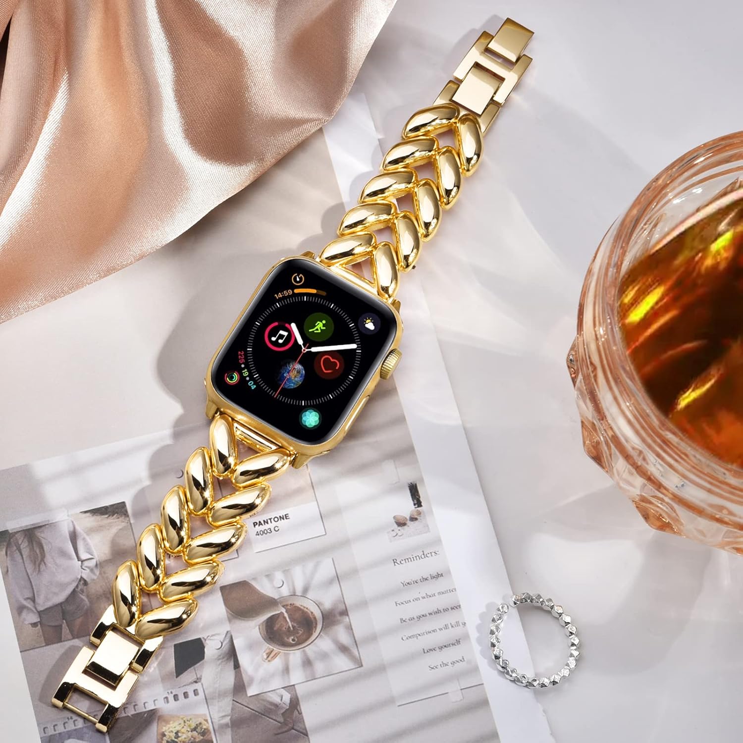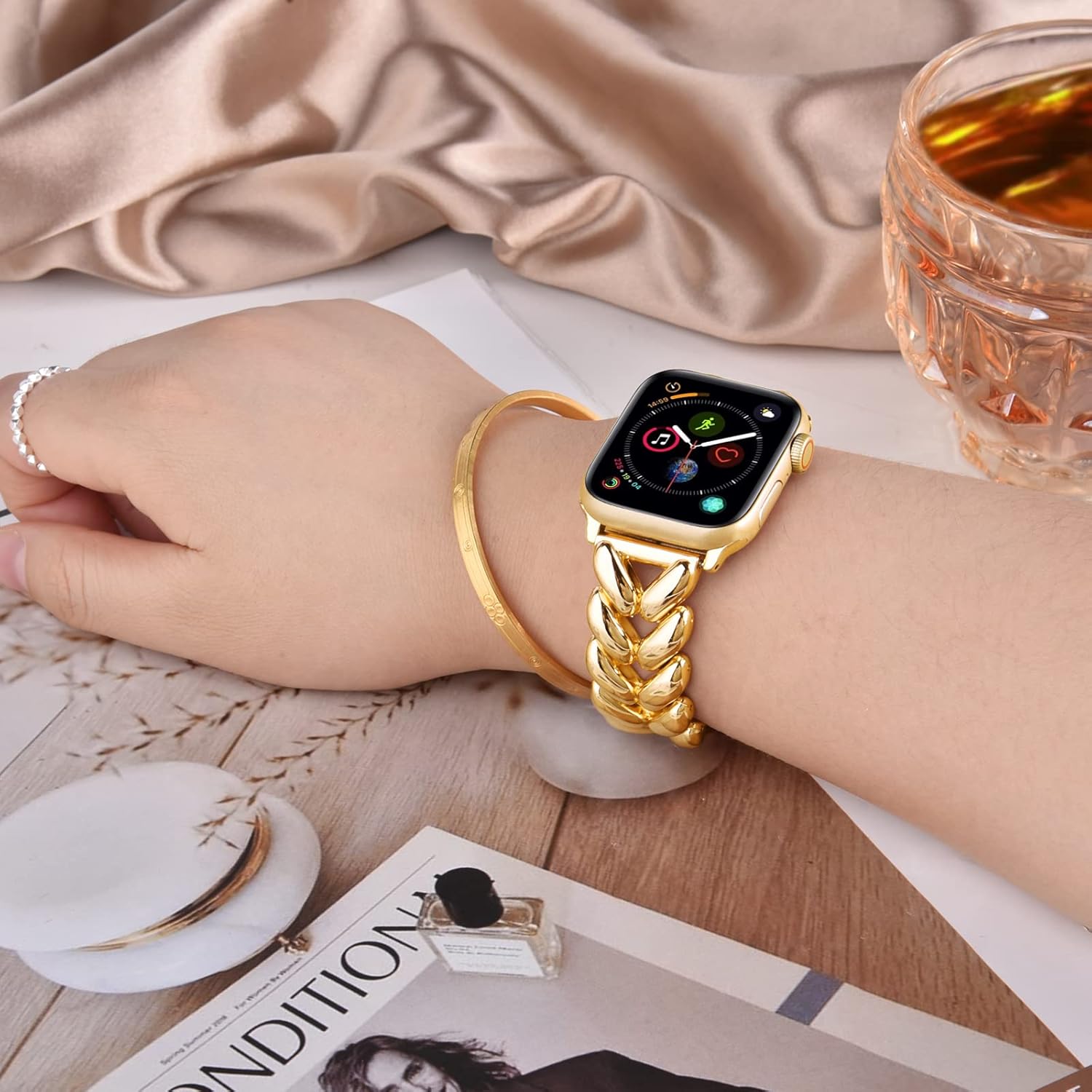 VISOOM Gold Bracelet Compatible for Series 9/8 Gold Apple Watch Band 41mm/40mm/38mm Series 7/SE Women Dressy Luxury Wristb...