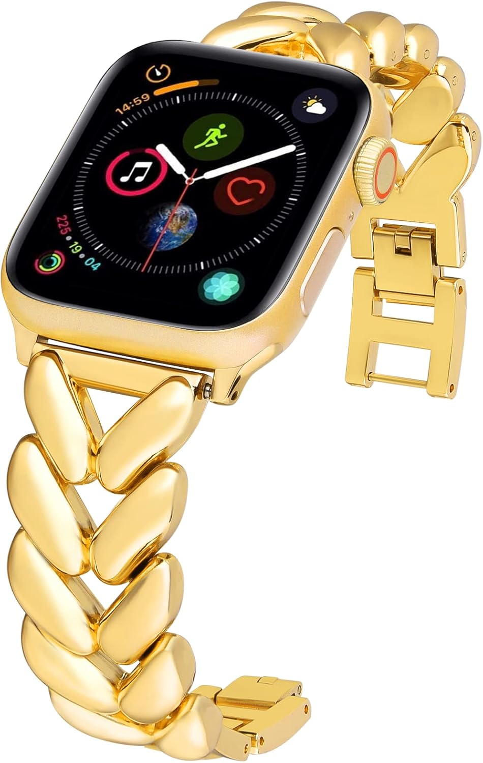 【CHAIN LINK DESIGN】: Created by an Italian designer, The dressy apple watch band is made of premium metal, which looks more like thick and delicate high jewelry on the wrist and makes your outfit stand out