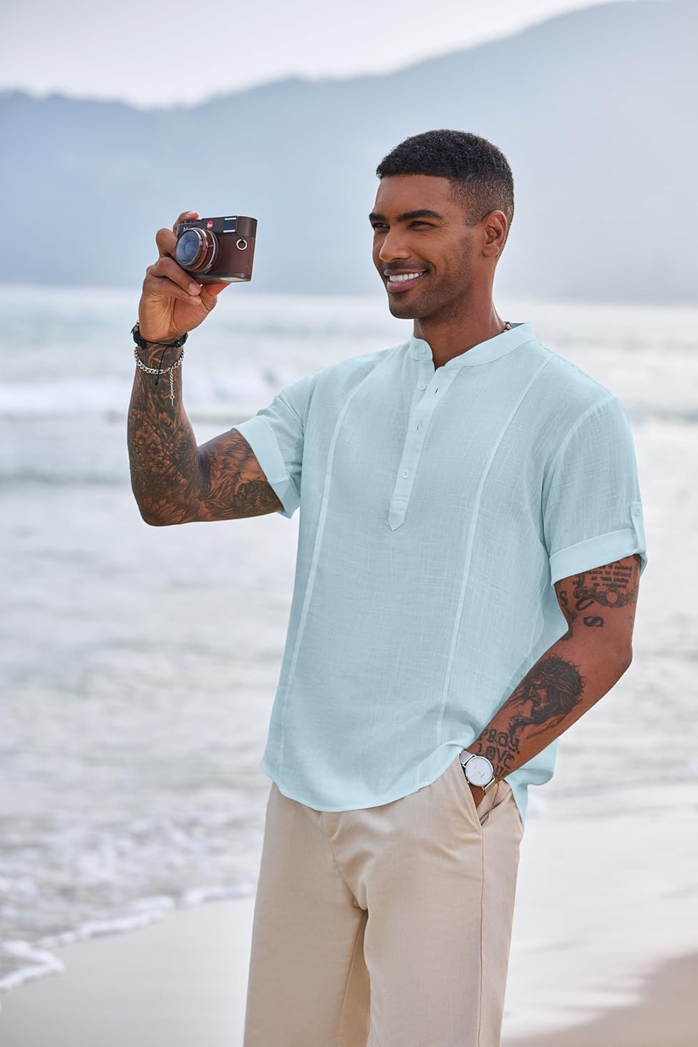 [CLOTHING MATCH] COOFANDY men's beach shirt easily matched with slacks, chinos, jeans, dress pants or casual shorts. Adding to you current collection to create a simple but fashionable style. Solid color henley short sleeve shirt , classic is never out of date.