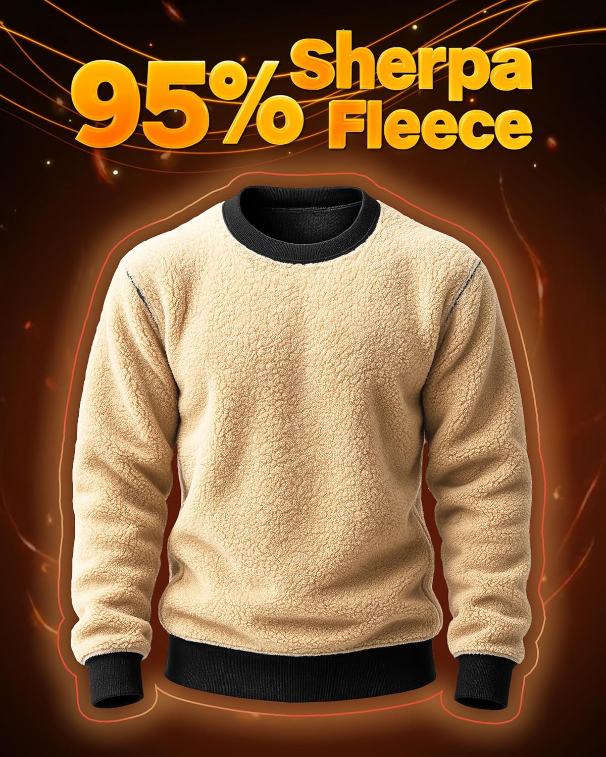 Shell: 95% Cotton + 5% Spandex. Lining: 100 Polyester. Sherpa fleece lining, crewneck, no hood, heavyweight, thermal, warm, soft, breathable and 4-way stretch mens sweat shirts