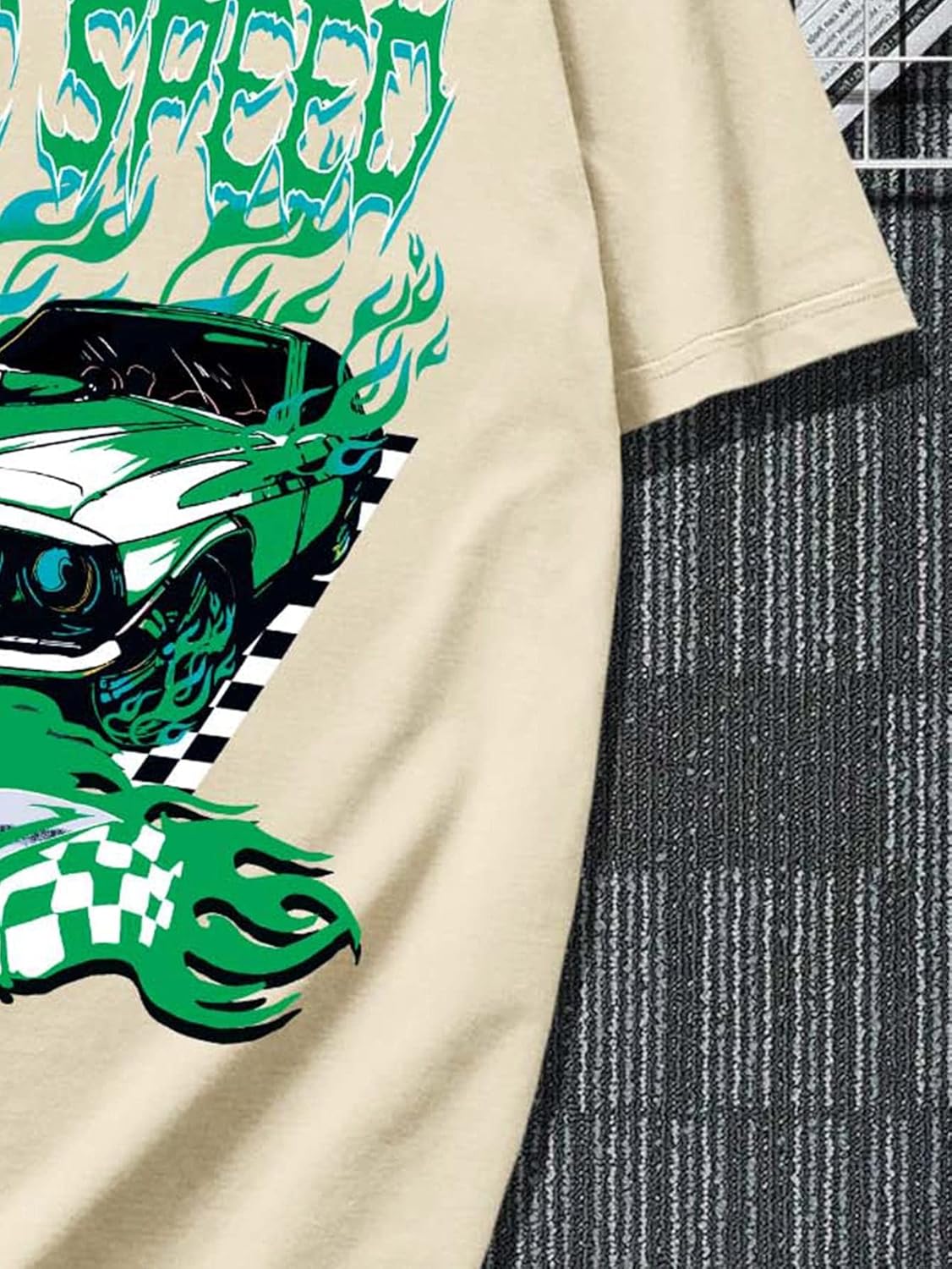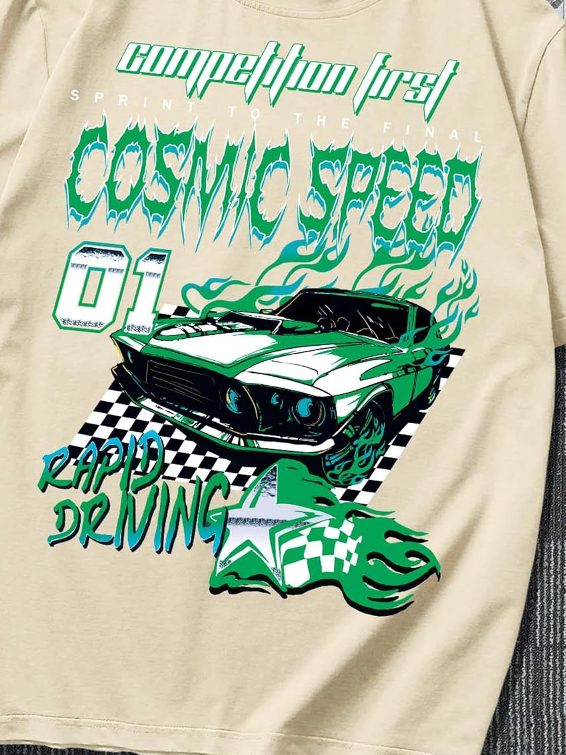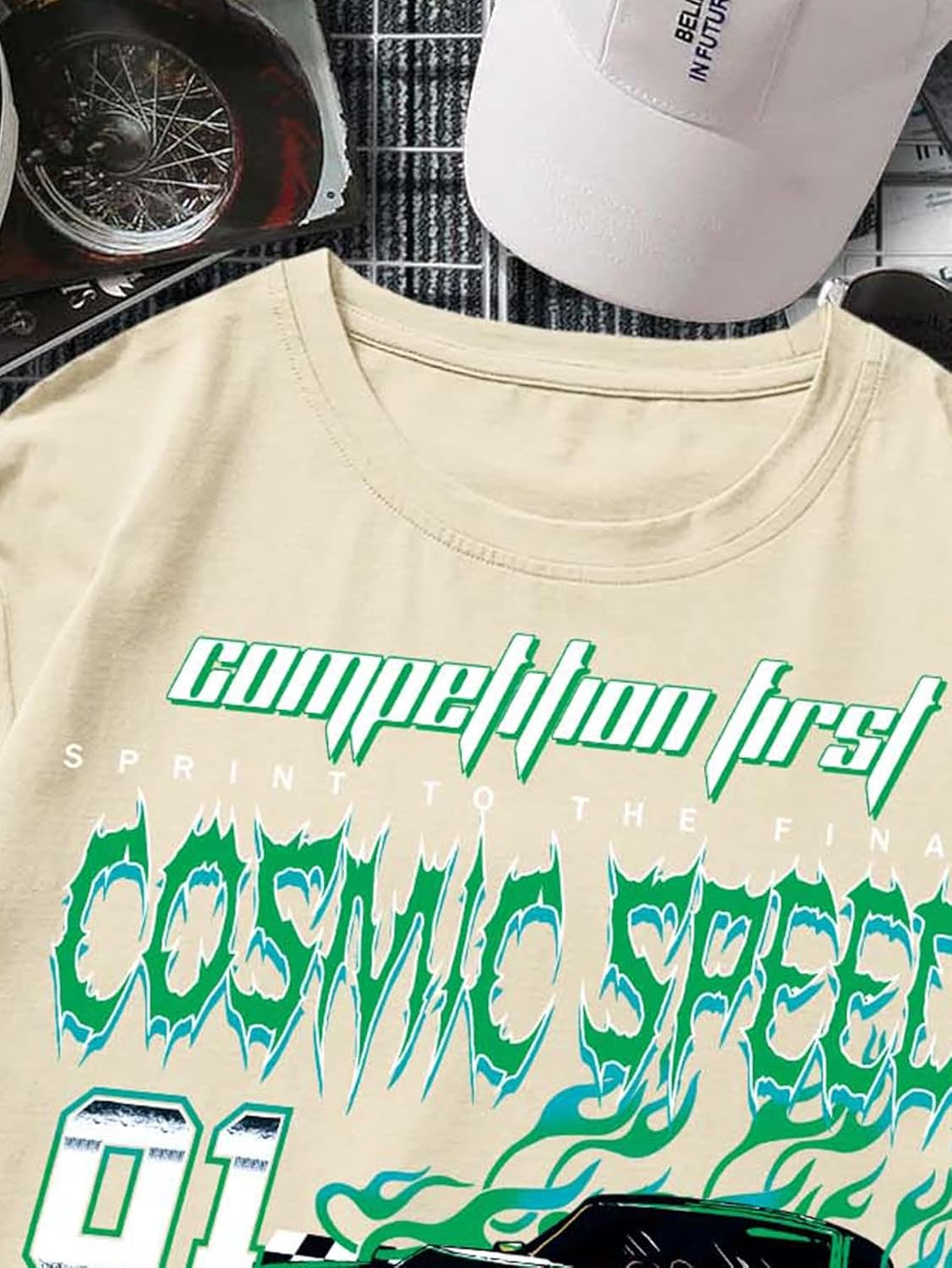 Features: Round neck, short sleeve, letter slogan print, car graphic tee, pullovers, fashionable