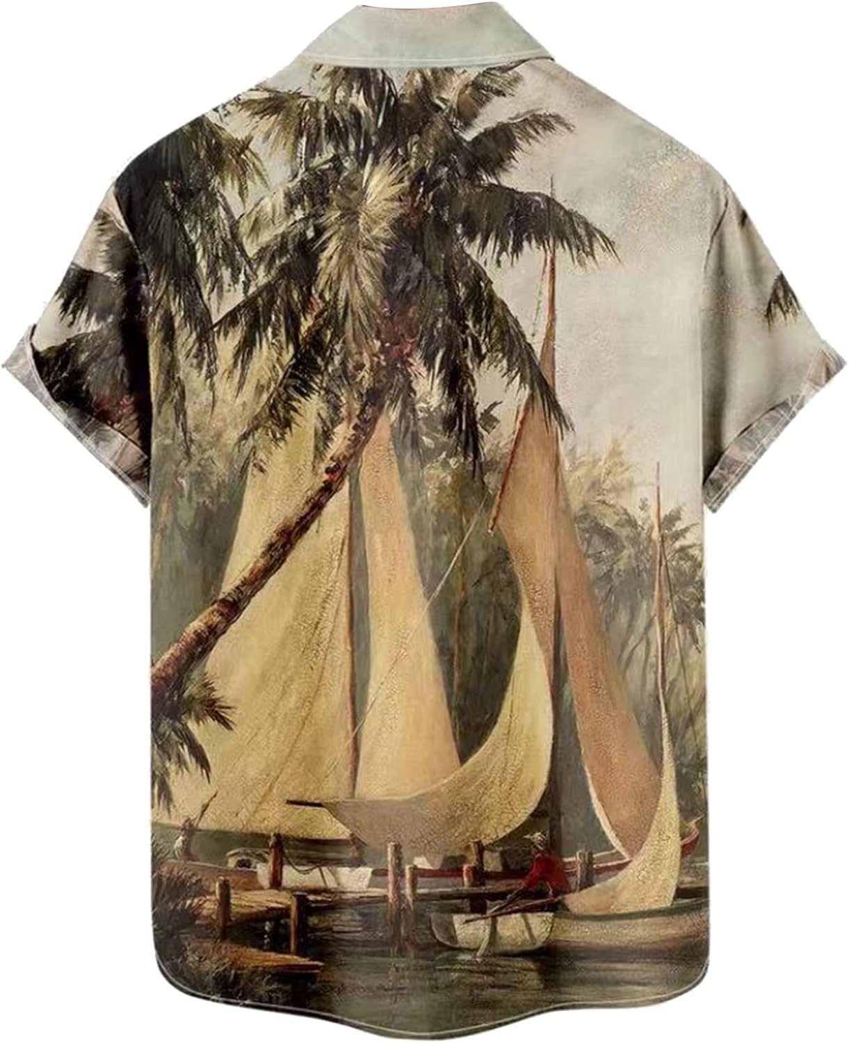 WRITKC Tropical Shirts Button Down Holiday Casual Hawaiian Short Sleeve Men Loose Beach Shirts