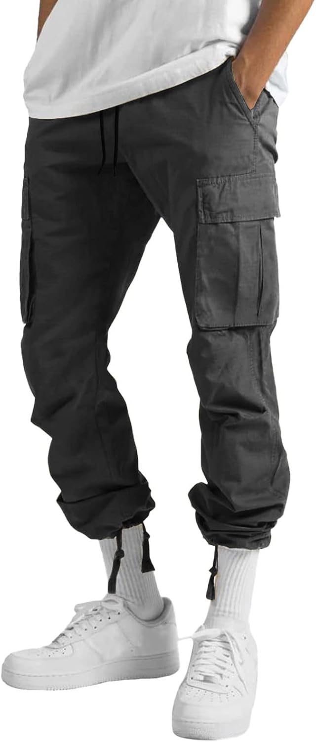 Features: solid color, 6 pockets for large storage capacity, drawstring waistband, relaxed fit straight cargo pants