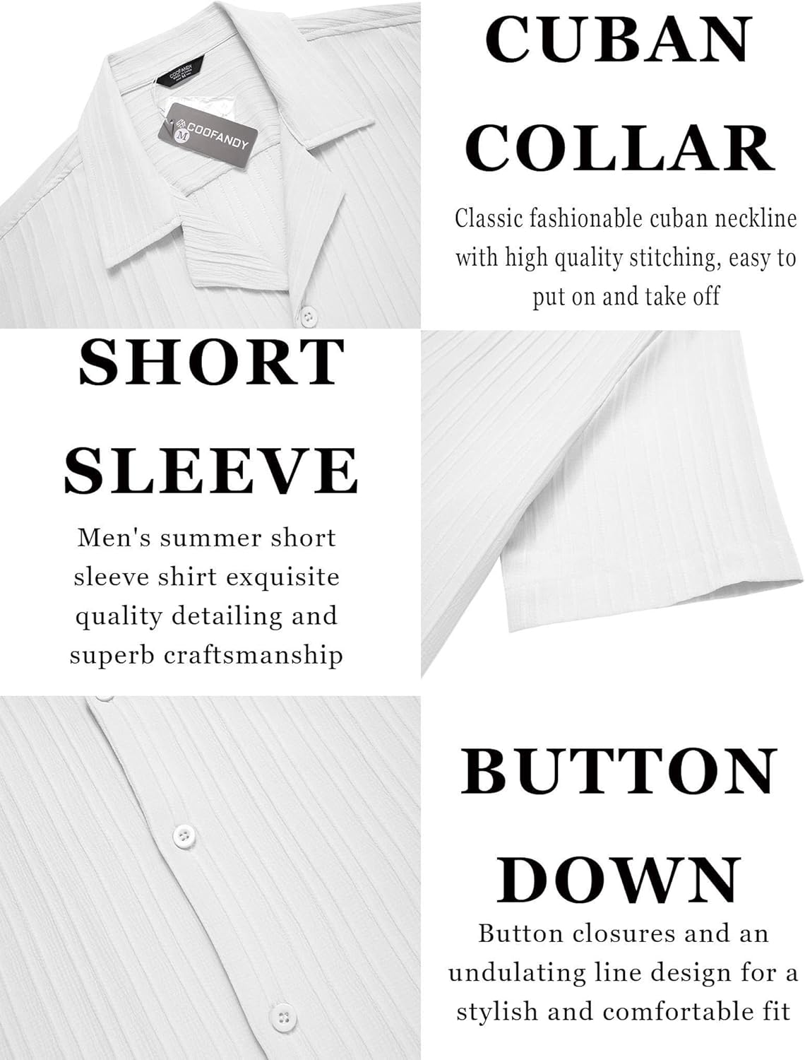 COOFANDY Men's Casual Shirts Short Sleeve Button Down Shirts Fashion Textured Summer Beach Shirt