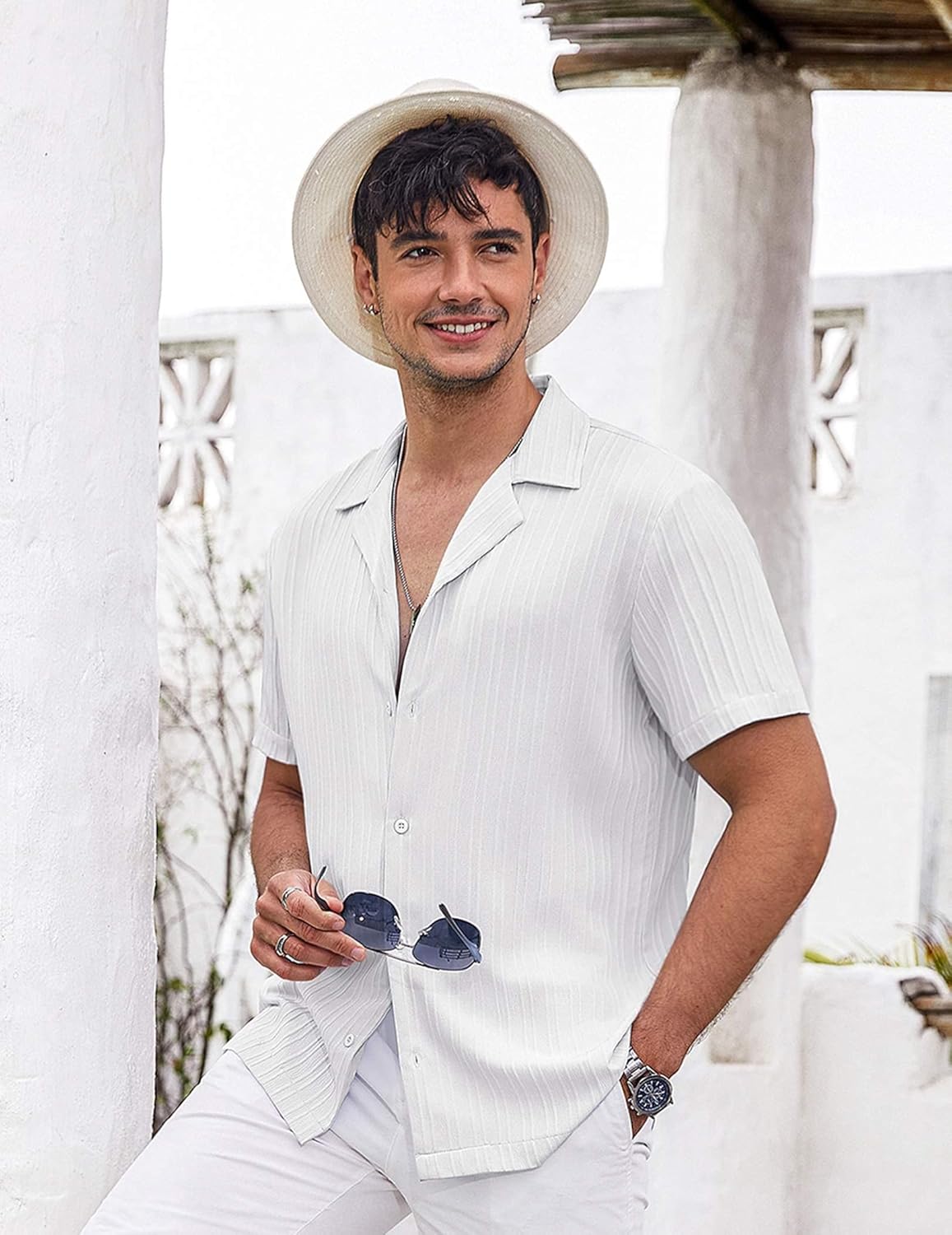 Unique Design --- Well-designed beach shirts for men feature regular fit, cuban collar, button down closure, classic solid color, slight vertical ribbing, the style is simple and fashion. It's the preferred summer shirts for you.
