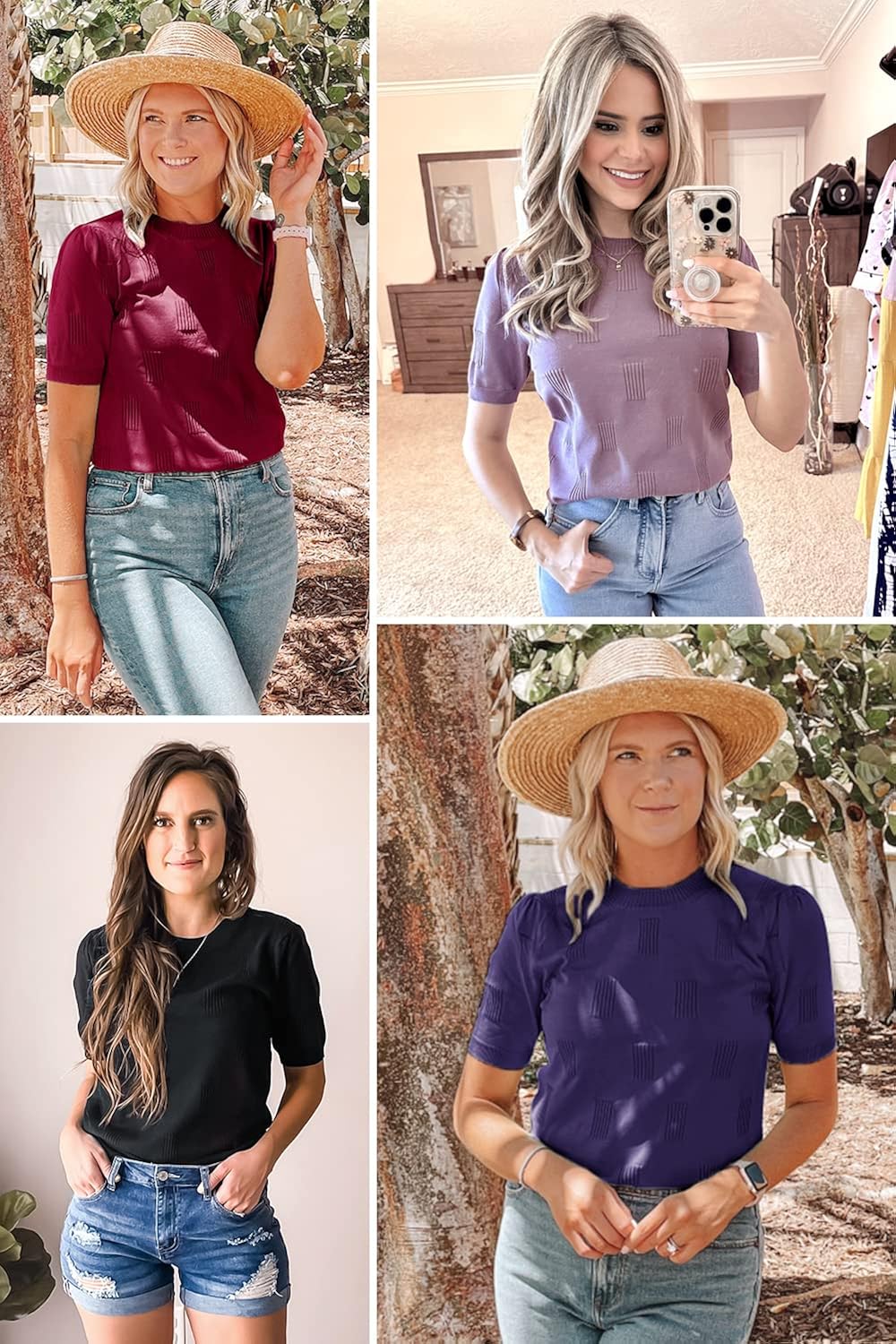 Arach&Cloz Womens Summer Tops Fashion Short Sleeve Sweaters Crew Neck Lightweight Knit Dressy Blouse 2025