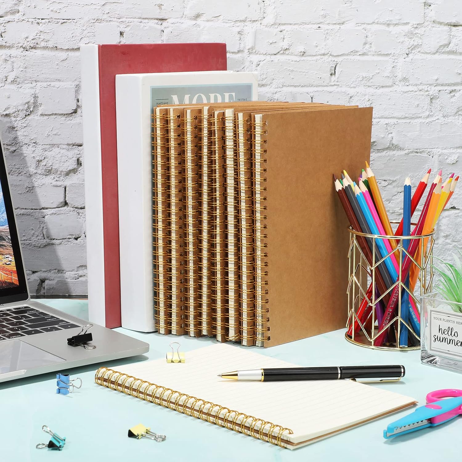 Outus 50 Pcs Spiral Notebook A5 Kraft Spiral Bound Notebooks Hardcover Wide Ruled Paper Wire Bound Spiral Journals Spiral ...