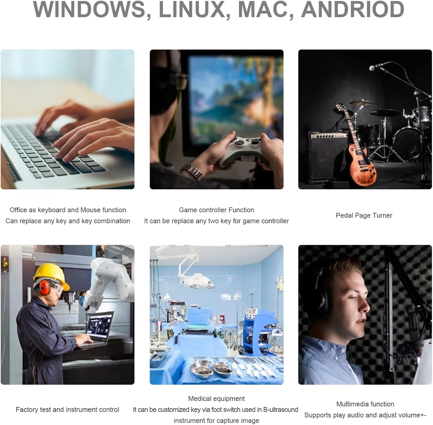 APPLICATION - It's designed for a free hands environment for play gaming, singer/guitarist, game with a controller, changing scenes,mute discord, take clips, push to talk ,streaming,muting mic,Photobooth,YouTube,Medical,Zoom, transcription key setting,factory test,instrument control etc. it's let you set pedal to have for what you need,take the strain off a repetitive use injury in your arm.