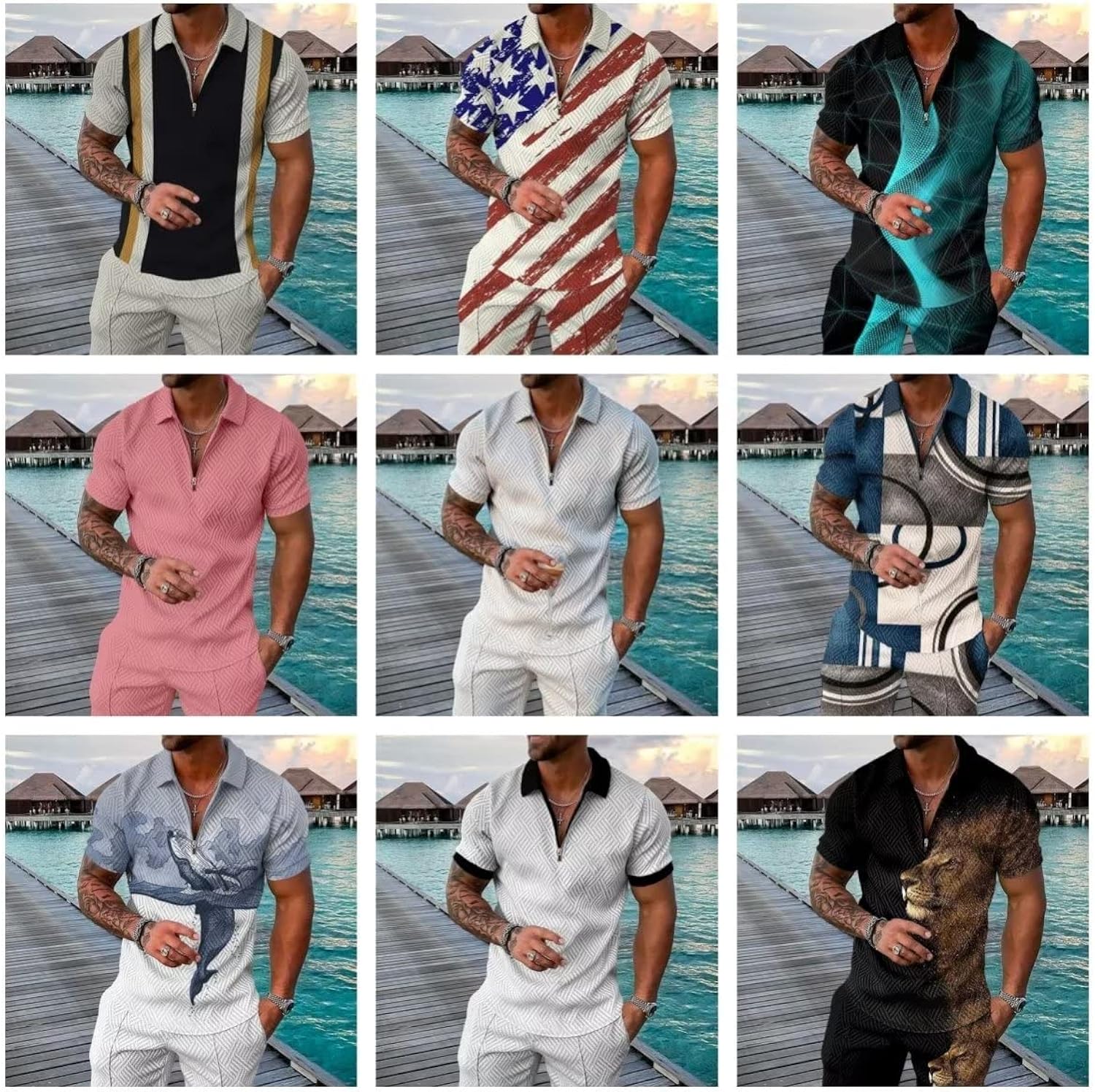 FEATURES: 3D printing, fashionable and novel,casual zipper polo shirt set,short sleeve half zipper polo sweatshirt ,short Pants,2 side pockets, elastic waist design with a drawstring to maintain high performance in sports.