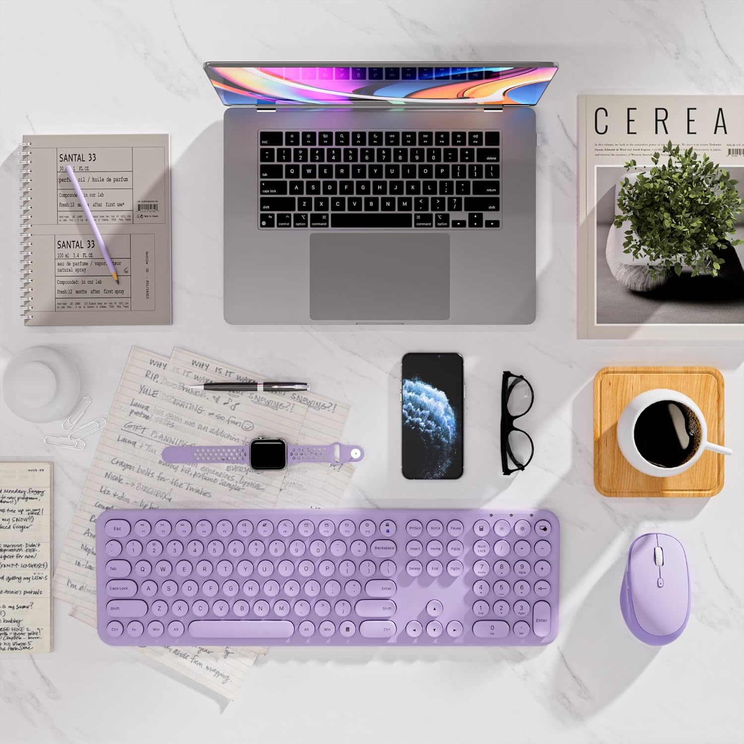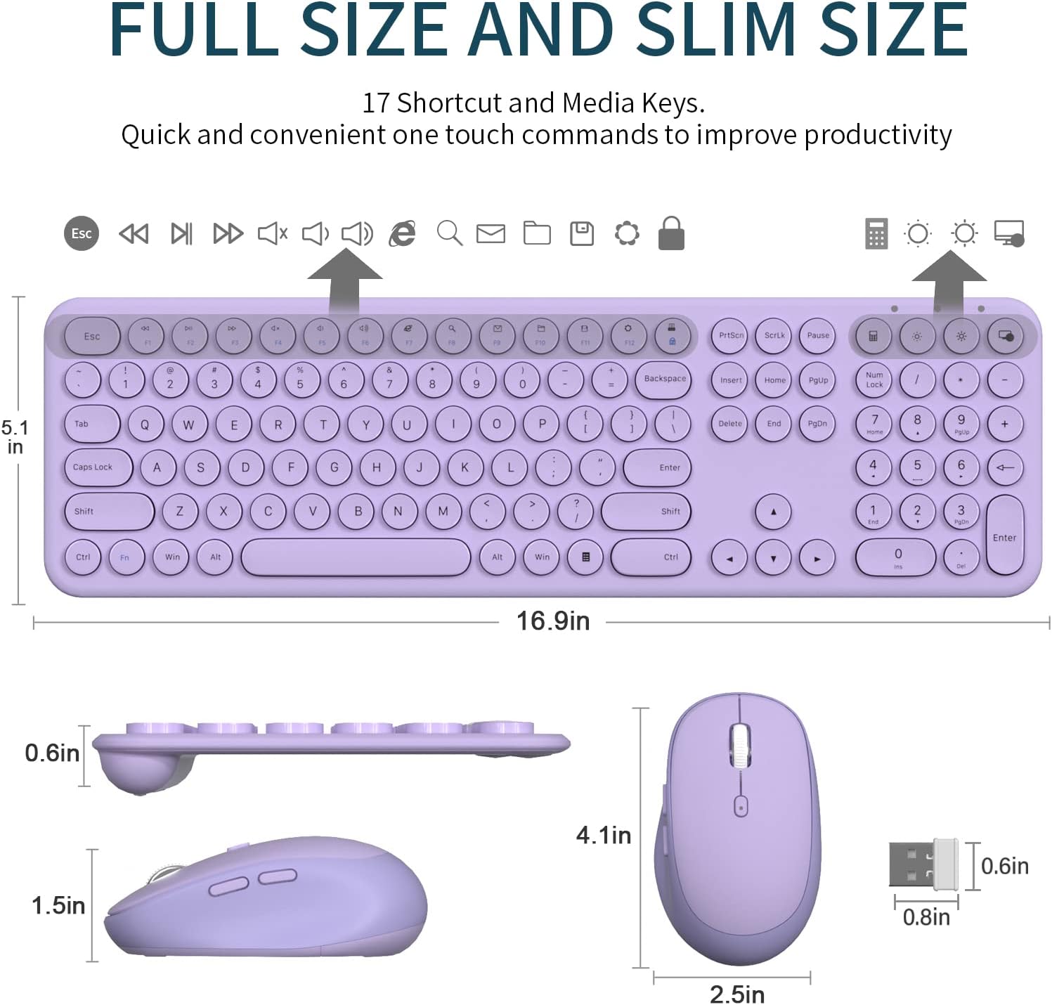 [ Retro Keyboard Mouse Set ] Use 2.4GHz Wireless Keyboard and Mouse Combo to enjoy comfortable and efficient typing experience, featuring 108 vintage typewriter rounded keys and 17 shortcut keys for a smooth and responsive press and click.