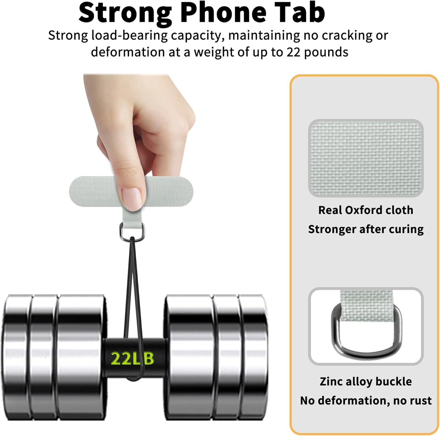 Strong Material: The phone tether tab is processed and solidified with Oxford cloth, which is more durable and not easy to break than ordinary phone tabs. The metal buckle is made of zinc alloy anti deformed or rusty