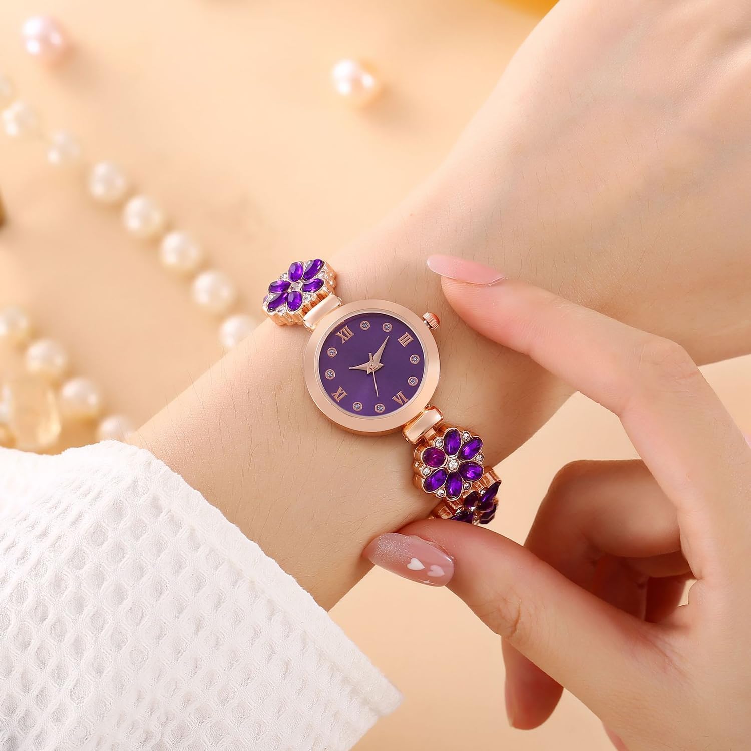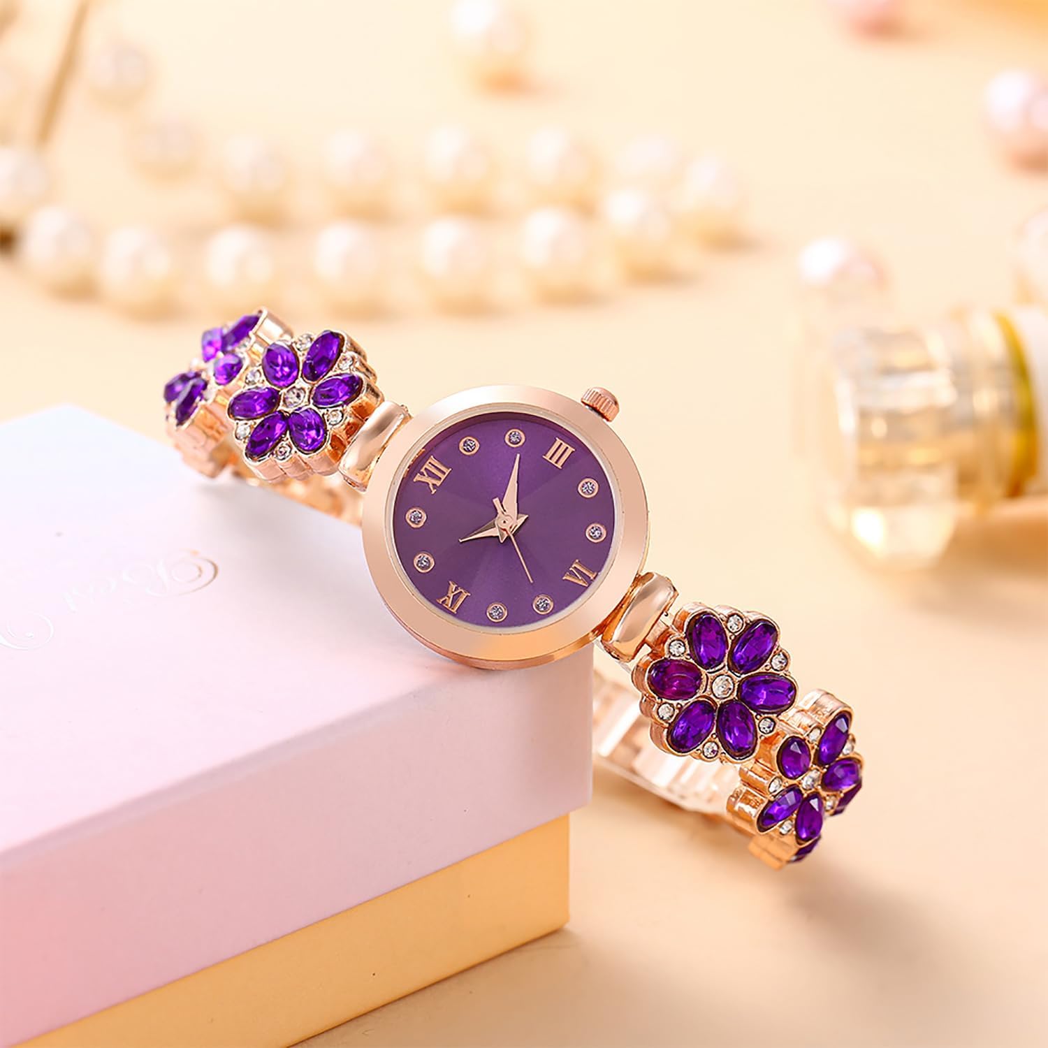 【Flower-shaped watch band】: Fashion flower-shaped watch band design, exquisite small dial with texture, simple and exquisite dazzling, elaborate fashion and elegant design, let your life more bright.