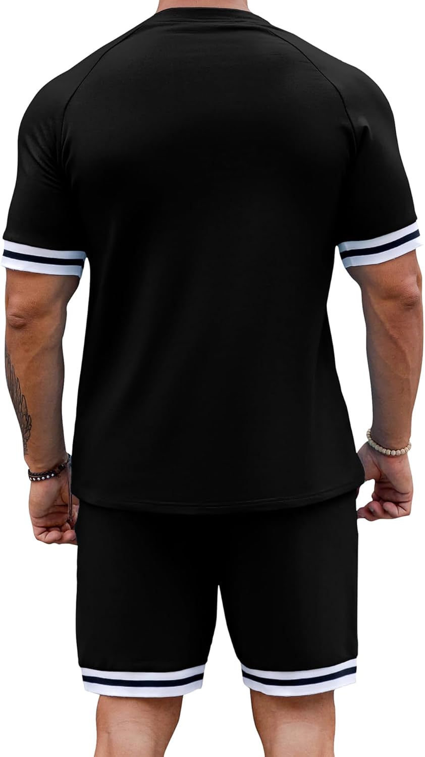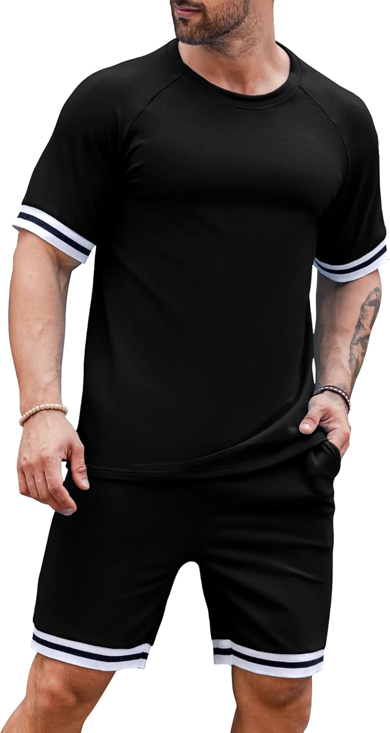 Design: Mens 2 Piece Outfit Sets, Men tracksuit sets, men tracksuits 2 piece set,short sleeve shirts, crewneck, short sleeve and high-rise elastic waistband shorts, side pockets, basic solid, adjustable waist drawstring. A must-have summer outfit sets in your wardrobe!