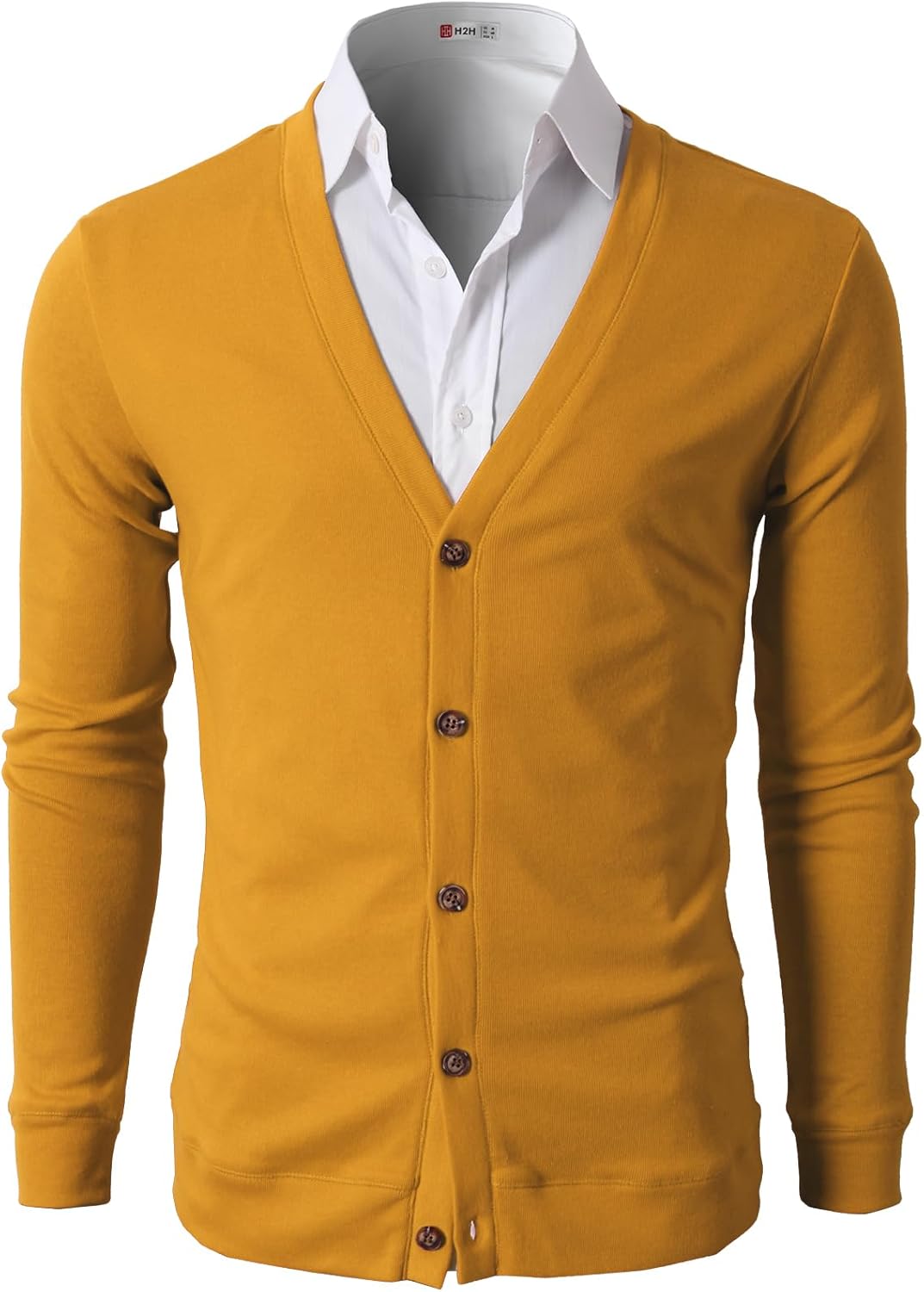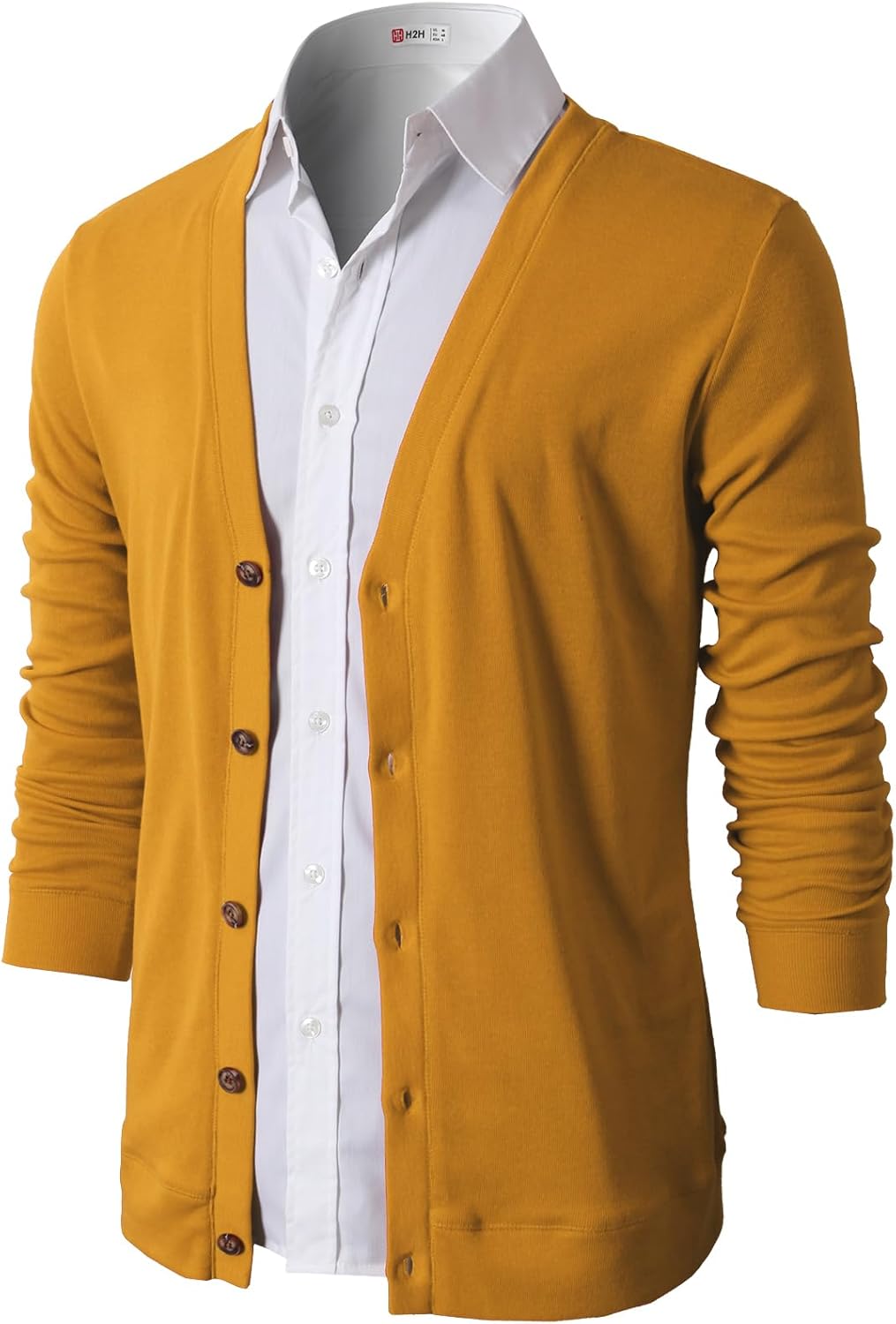 H2H Mens Casual Slim Fit Cardigans V-Neck Basic Designed Long Sleeve Button Down
