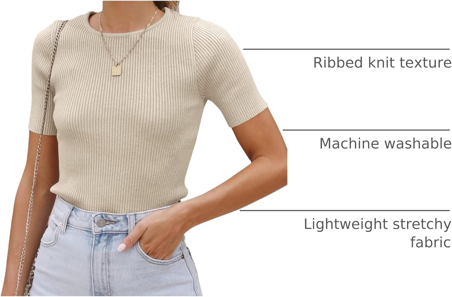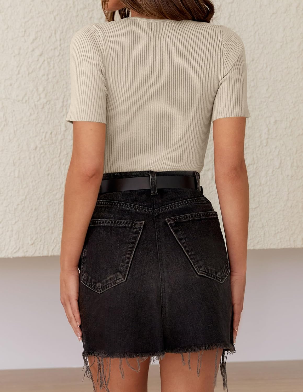 Update your chic edit with our knit tops. This summer tops for women feature a classic round neck, short sleeves, ribbed knit texture, slim fit, solid color, casual and simple style