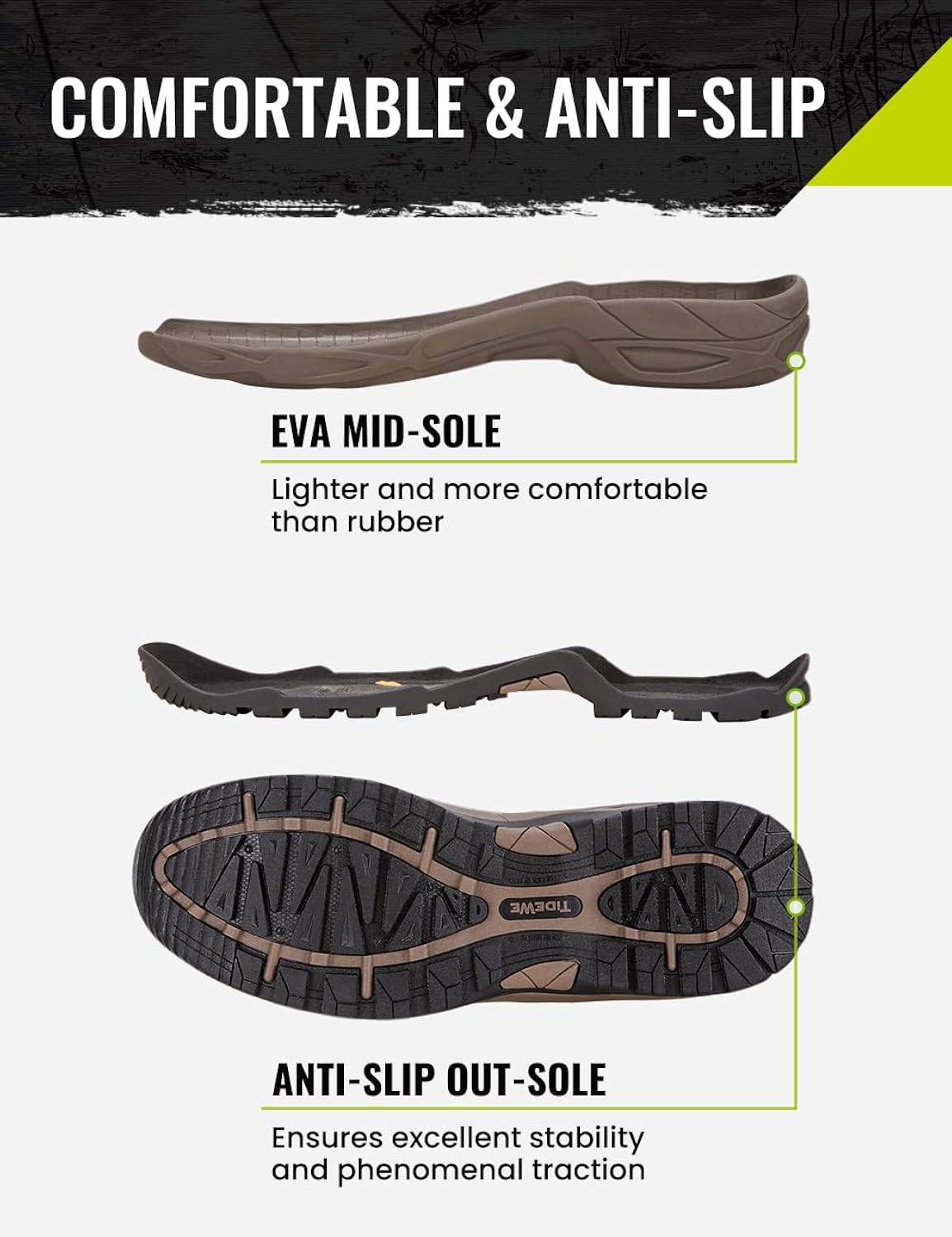 【Comfortable & Anti-Slip】- Our EVA contoured mid-sole allows for lightweight cushioning, shock absorption, and comfort. The back gussets with cinch buckles ensure a secure and custom fit. Ingenious out-sole pattern design offers excellent stability and extra solid traction.