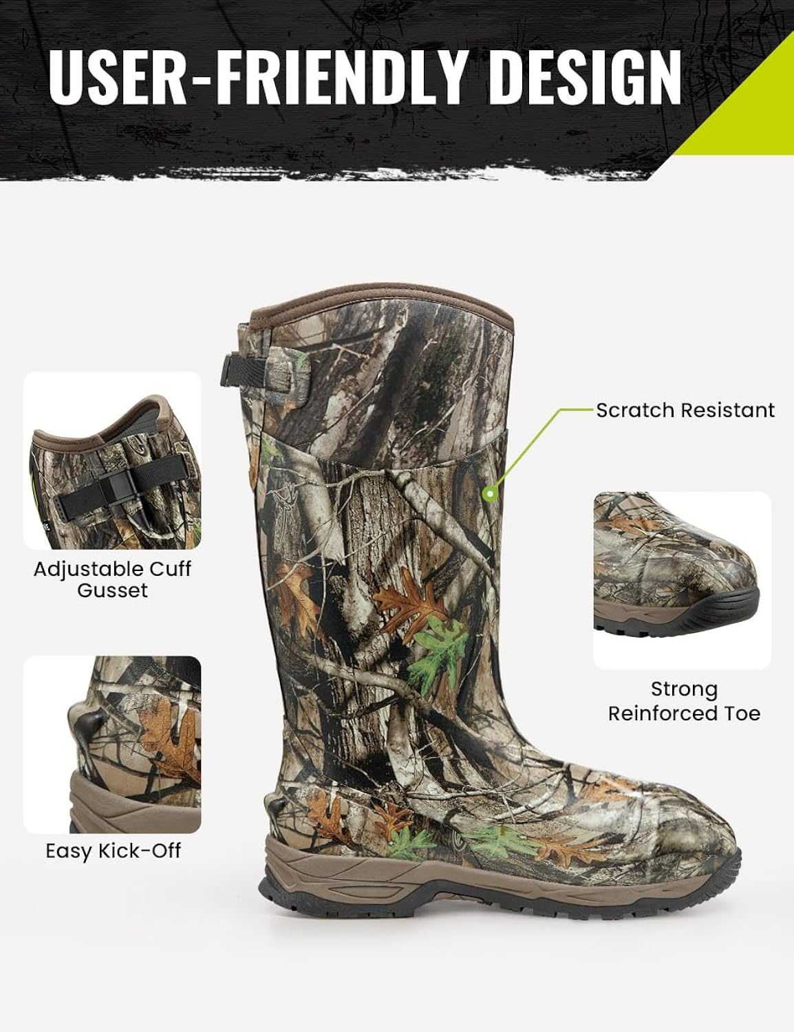【100% Waterproof】- It's important to maintain dry feet when hunting, especially in colder temperatures. Our high grade rubber and neoprene provides extra toughness and makes for a 100% Waterproof Design.