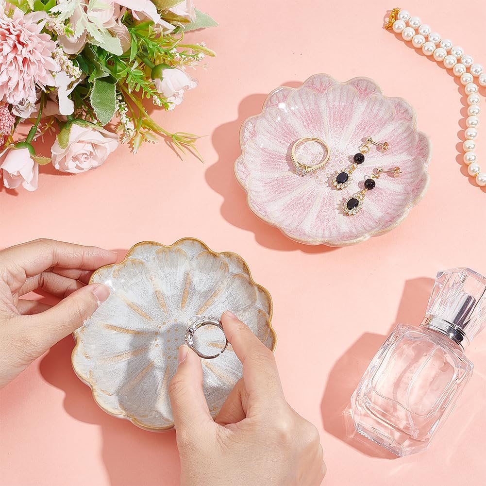 Wide Usage -- This flower jewelry dish is not only ideal to be used as a jewelry organizer dish to place a variety of small jewelry trinkets like earrings, rings, necklaces, bracelets, hair clips or keys, and more, also a delicate decorative dish on dresser, vanity table, bathroom table, shop counter.