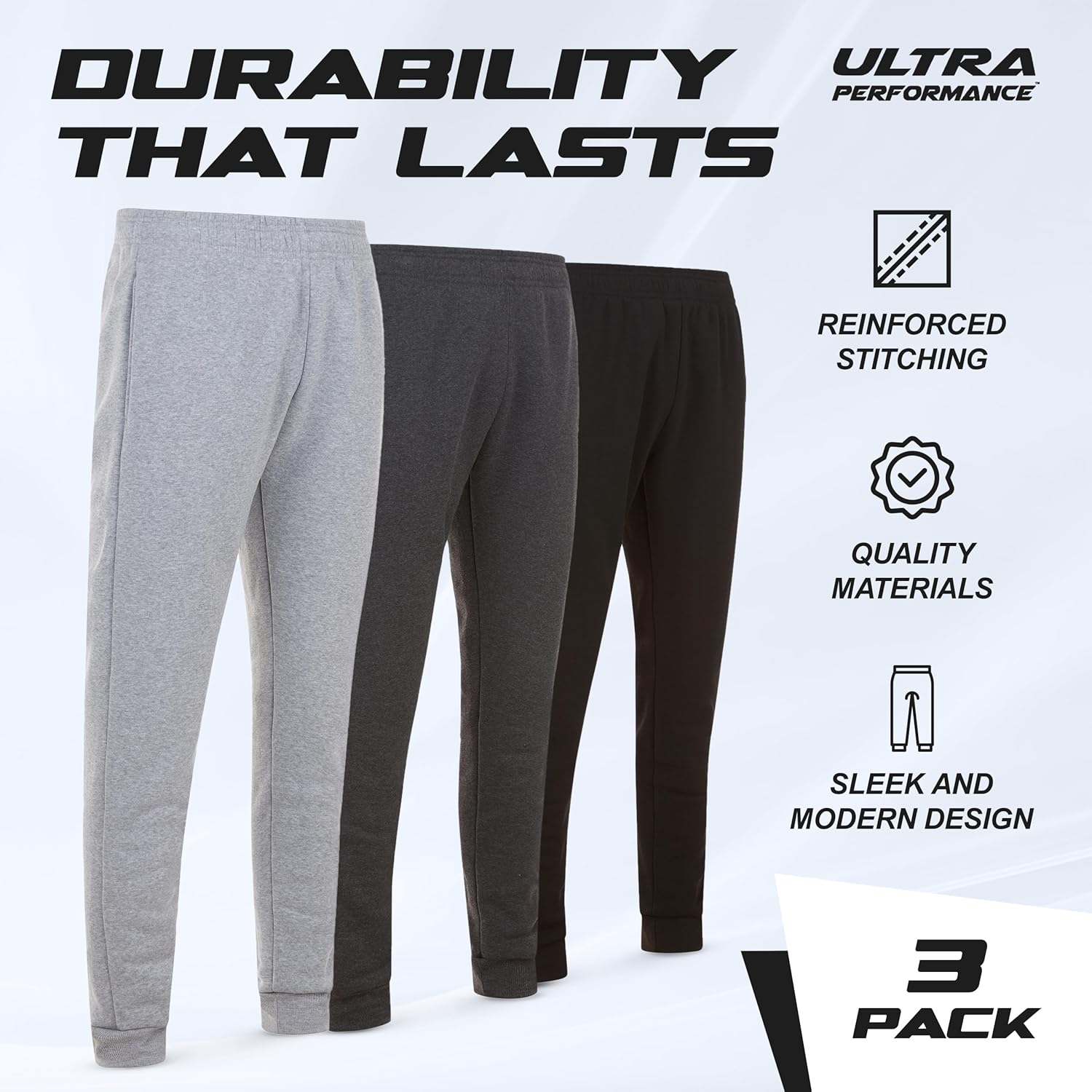 Ultra Performance 3 Pack Mens Joggers Mens Athletic Sweatpants with Pockets for Men, Small - 3X