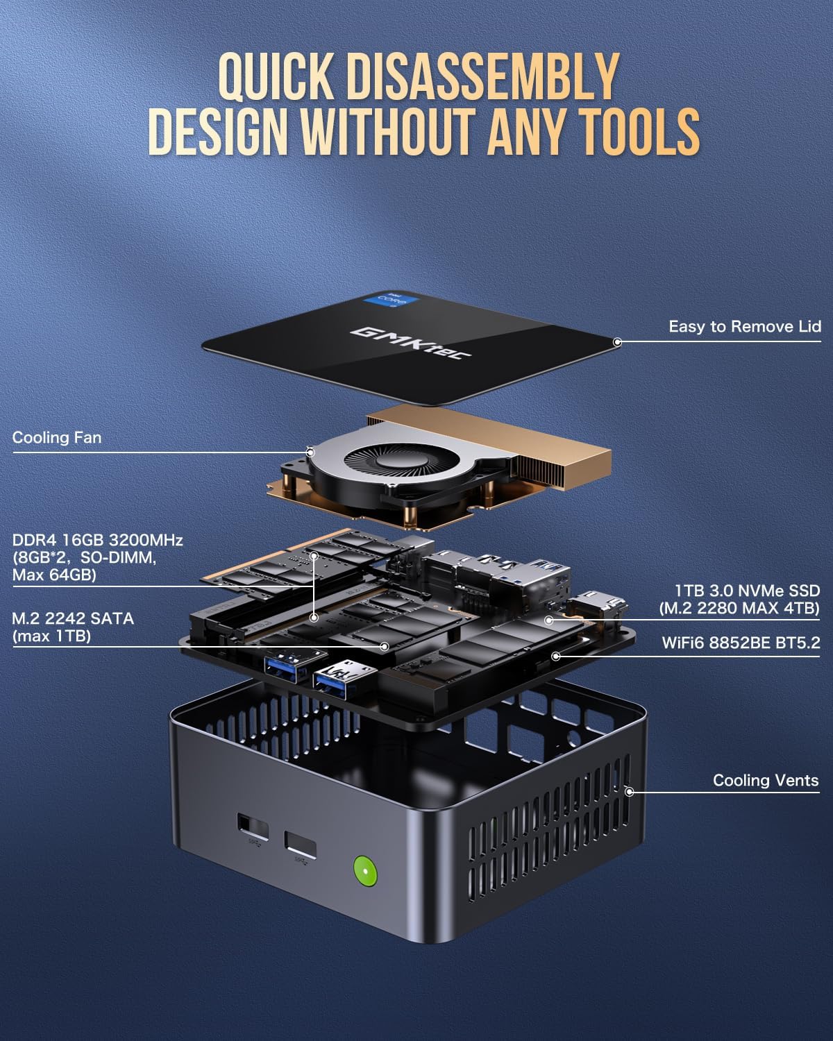 16GB DDR4 and 1TB NVME SSD: Desktop computer Comes with 16GB SODIMM, dual-channel DDR4 supports expansion up to 64GB. 1TB SSD M.2 2280 NVMe (PCIe3.0), supports expansion to 2TB, in addition, M.2 2242 SATA can be expanded to 2TB