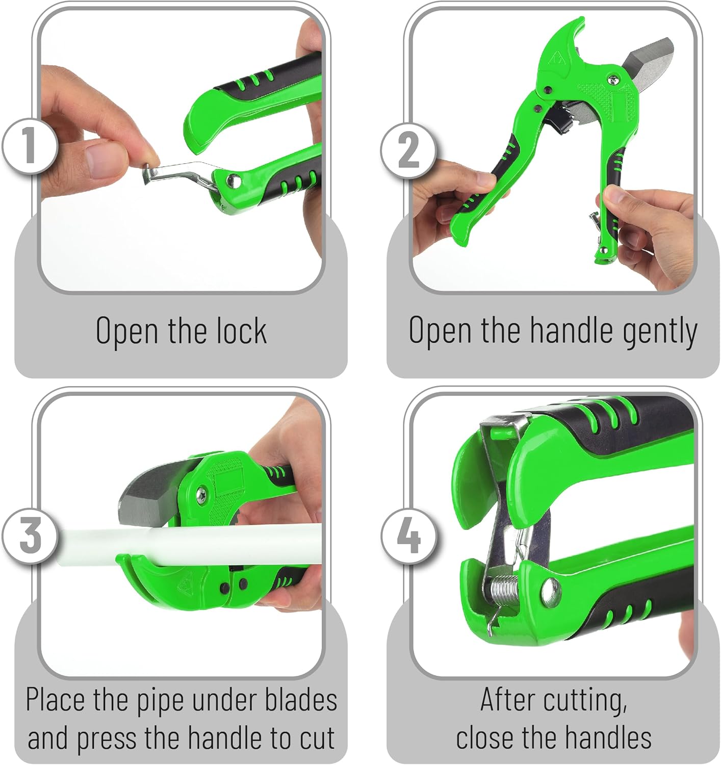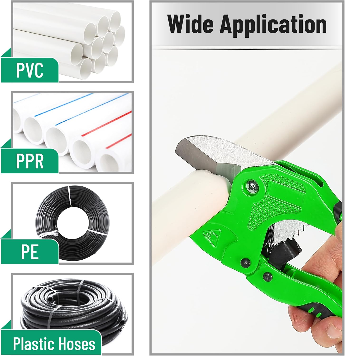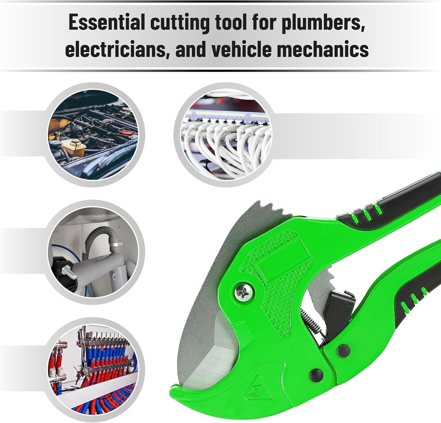Equipped with a sharp SK5 blade, it ensures smooth, clean cuts with minimal effort, ideal for PVC, PEX, and other plastic tubing.