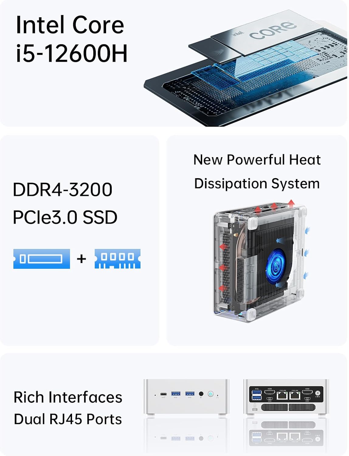 【Excellent Performance】The MINISFORUM NAB6 Lite Mini PC is equipped with Core i5-12600H(12 cores/16 threads/up to 4.5GHz) Processor. With Intel Iris Xe Graphics eligible, the graphics frequency up to 1.40GHz.