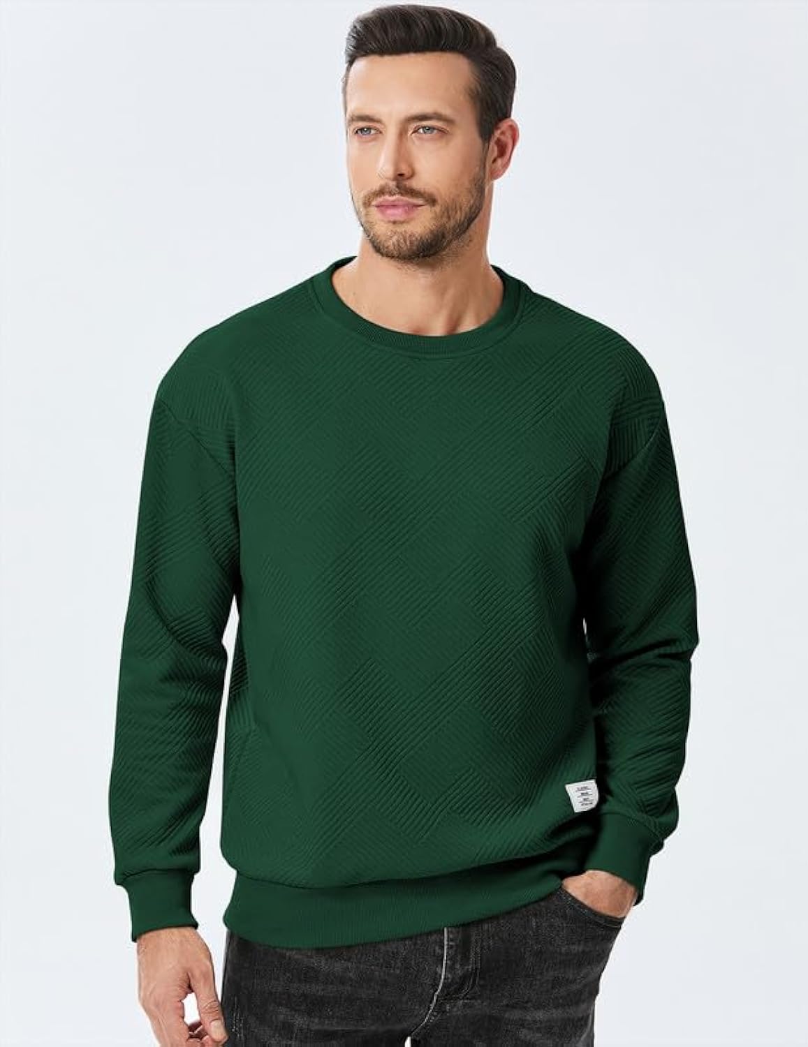Dokotoo Men Men's Crewneck Sweatshirts Soild Color Geometric Texture Long Sleeve Casual Pullover Shirt