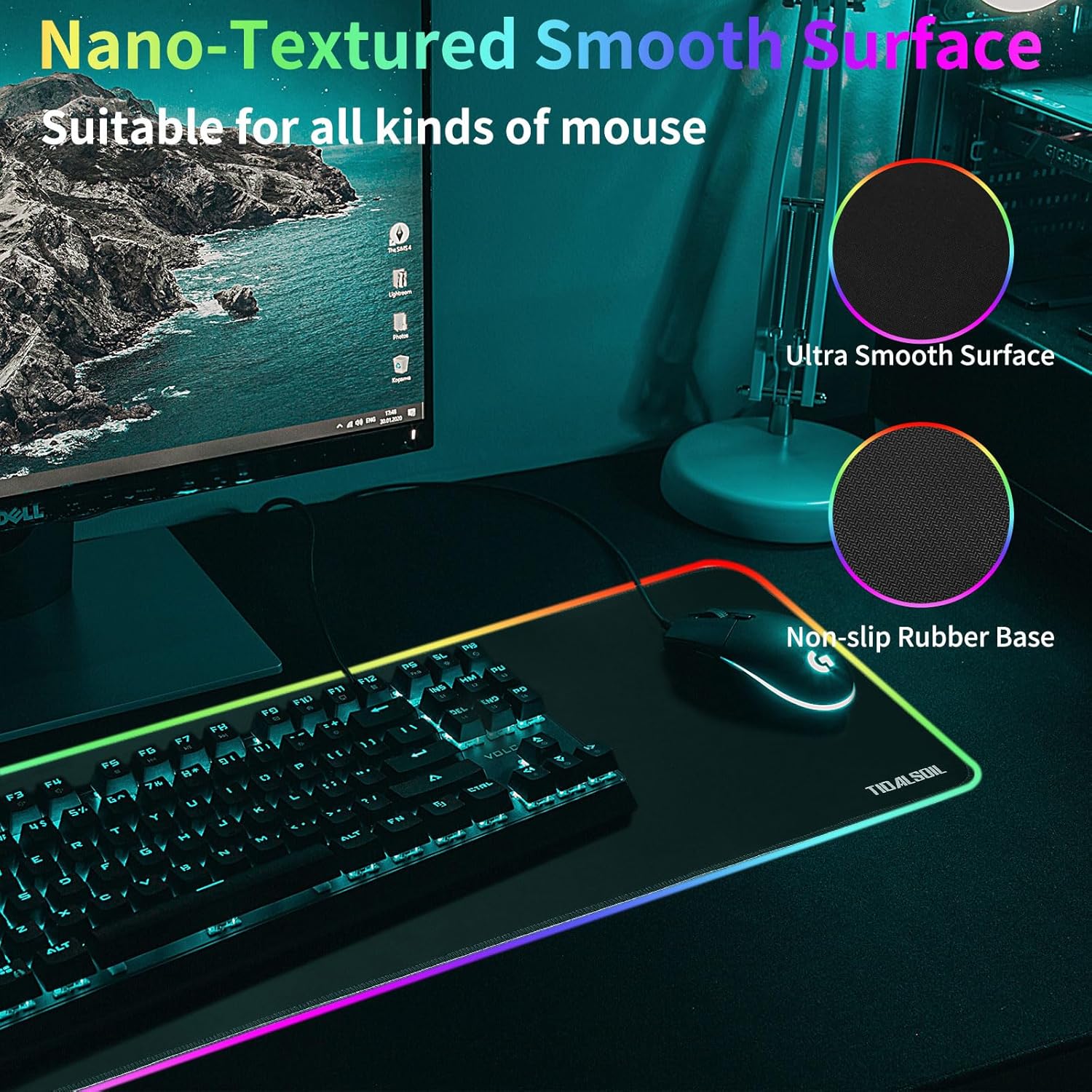 【12 Stunning RGB Light Modes】: Featuring 4 dynamic modes (Color Gradient, Breathing, Flicker Change, Cycle Color) and 8 static modes, this gaming mouse pad offers vivid RGB lighting to create an immersive gaming atmosphere - all while ensuring your eyes remain comfortable. 【This product is manufactured in China. Due to recent changes in import regulations, pricing may be adjusted in the coming weeks.】