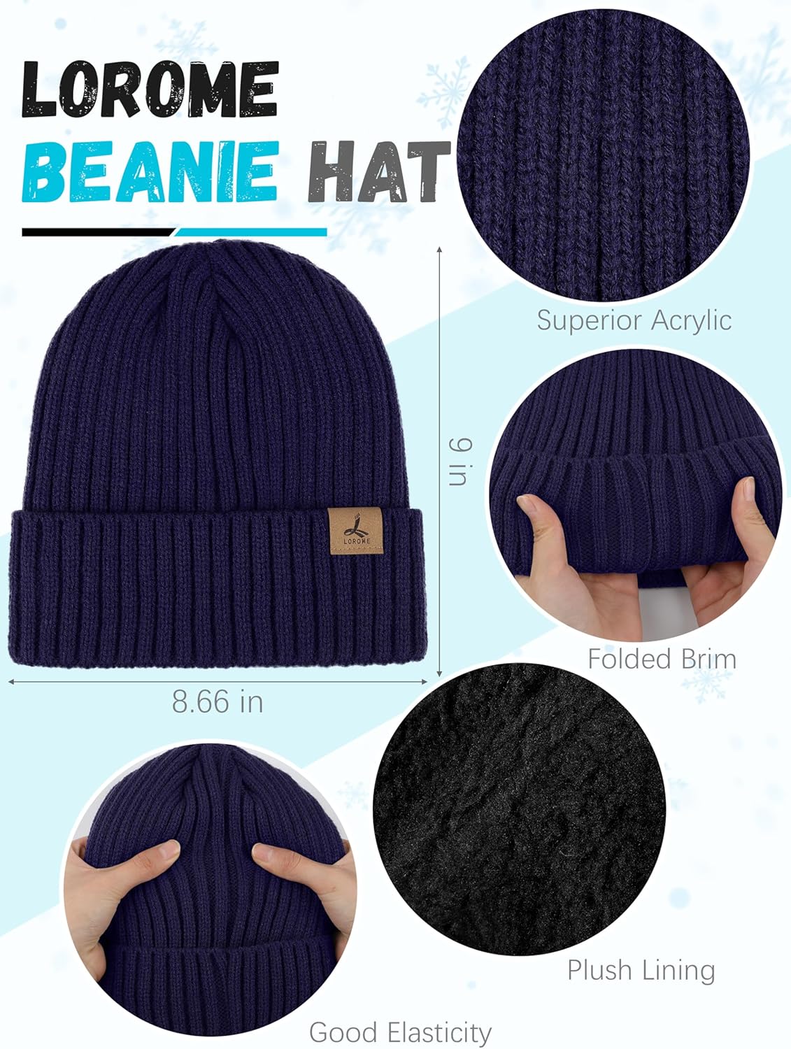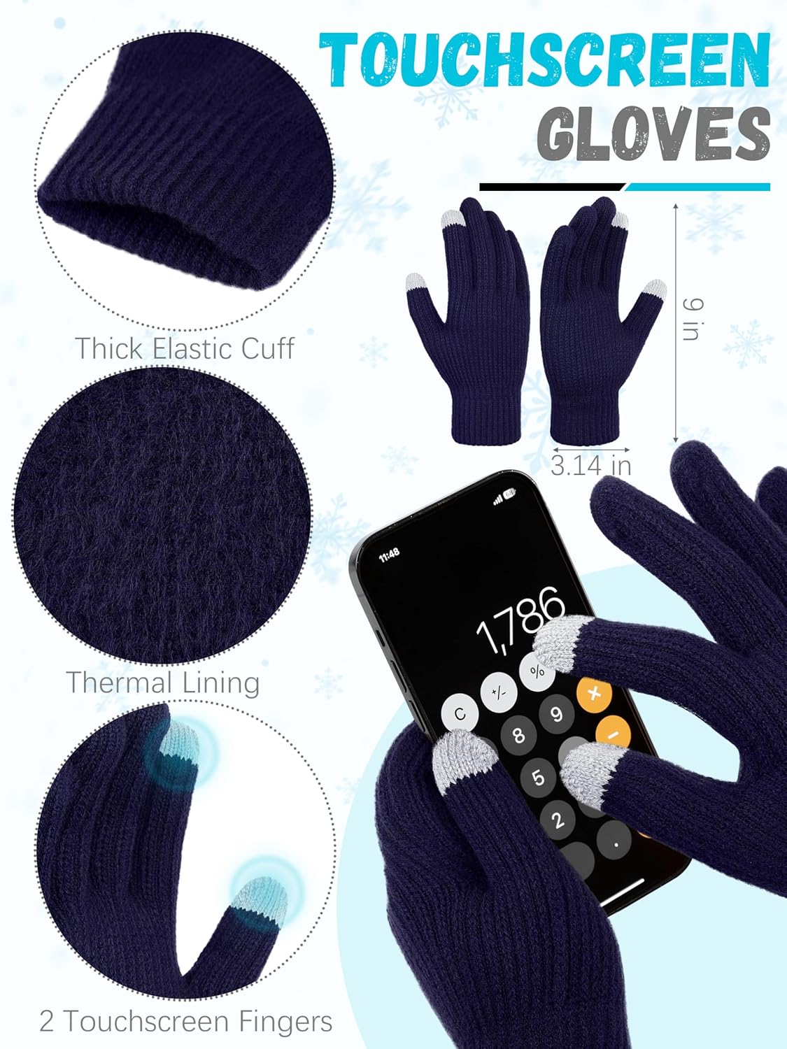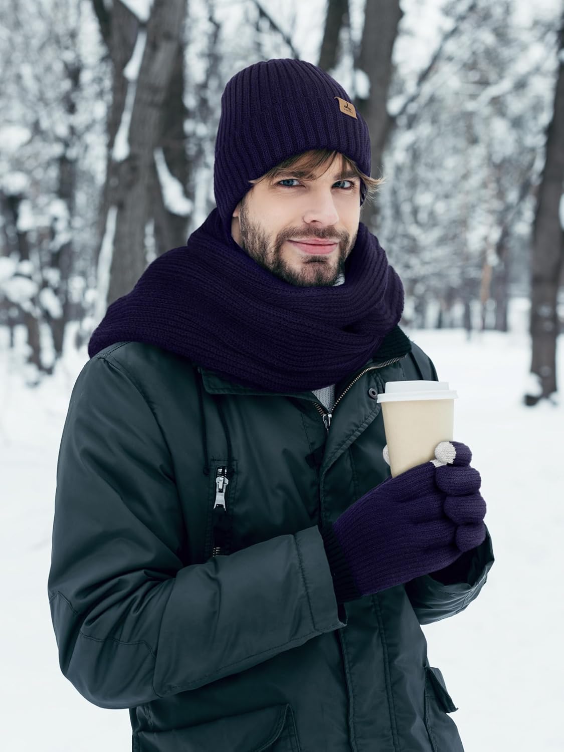 What You Will Receive - You will receive the navy blue 3-in-1 mens winter beanie set, including 1 pcs mens winter hat, 1 pcs winter scarf, and 1 set of thick cuff touch screen gloves. Perfect for men's winter fashion.