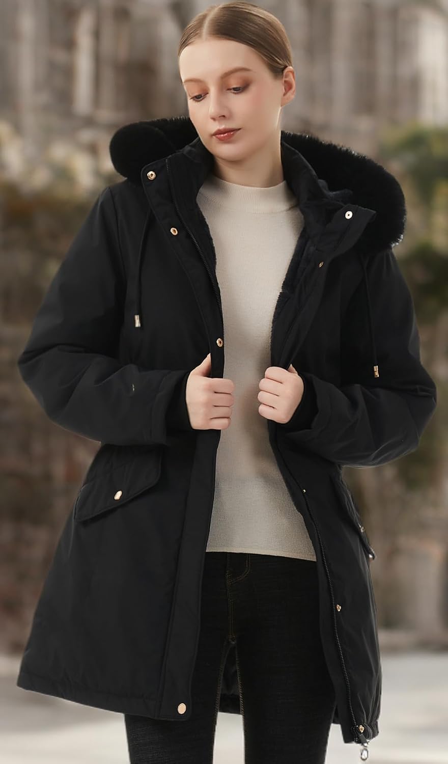 Adjustable Fit: Our warm down jacket features an adjustable belt that not only keeps you warm but also allows you to highlight your elegance by adjusting the size. Enjoy the warmth and style at the same time with our versatile jacket.
