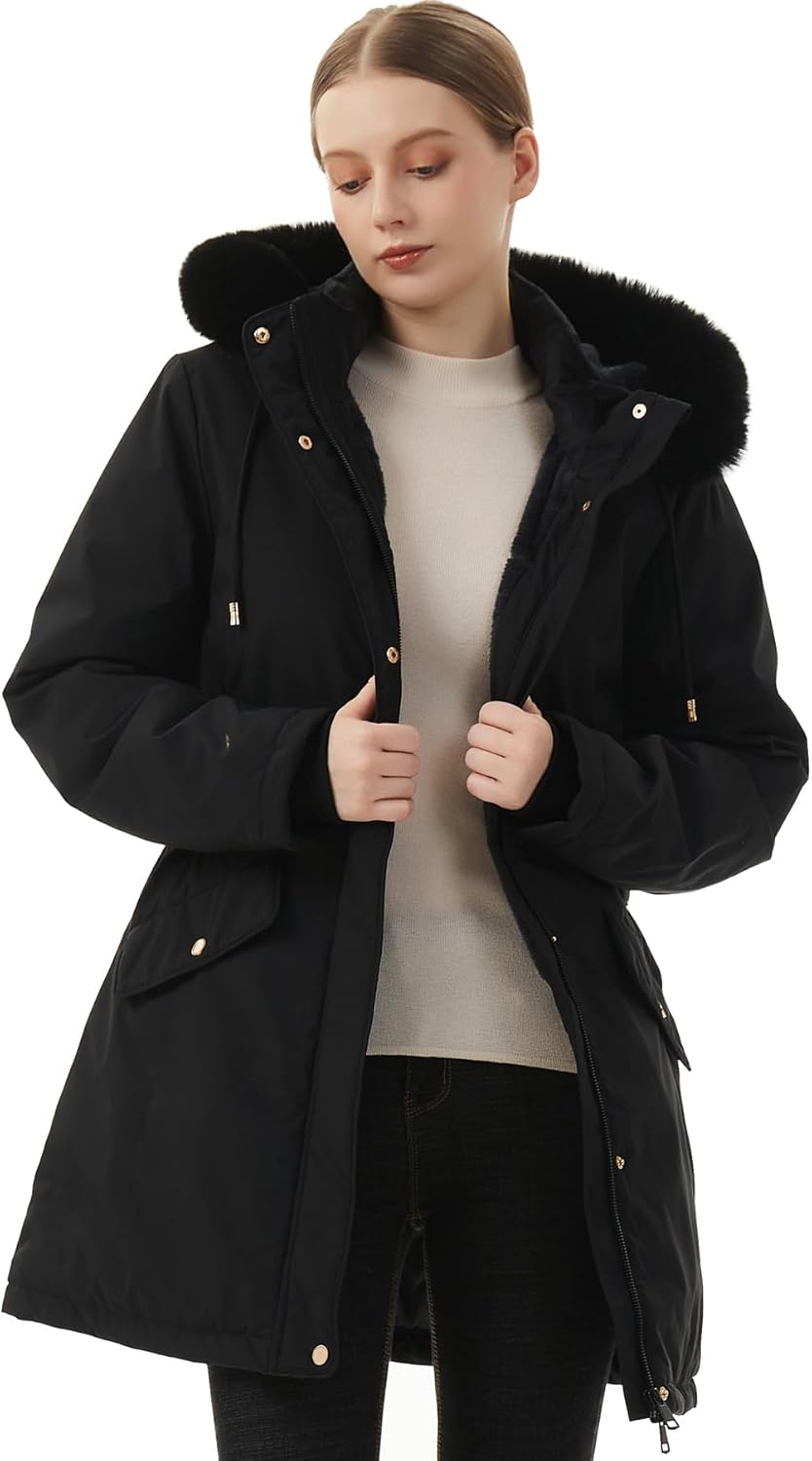 Warm & Cozy: Stay warm and cozy in our waterproof winter parka, designed with a durable shell and a thicken fleece lining. The threaded cuffs and removable faux fur hood provide extra protection against cold air, making it the perfect choice for a thick winter coat.