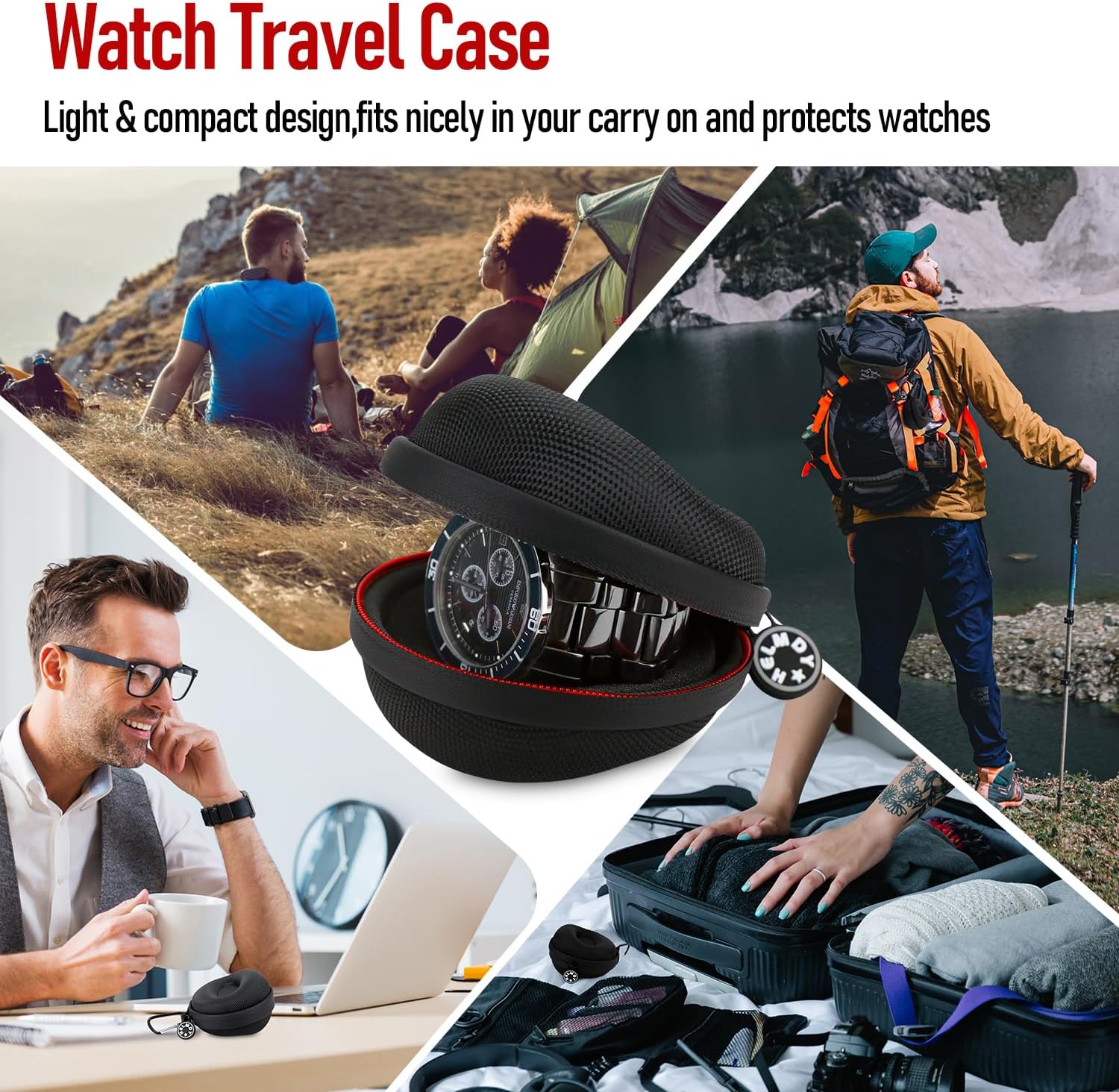 HELMDY Watch Travel Case Waterproof Single Box for Men, Nylon Portable Watch Organizer Holder 1 Slot Women - Fits all Wris...