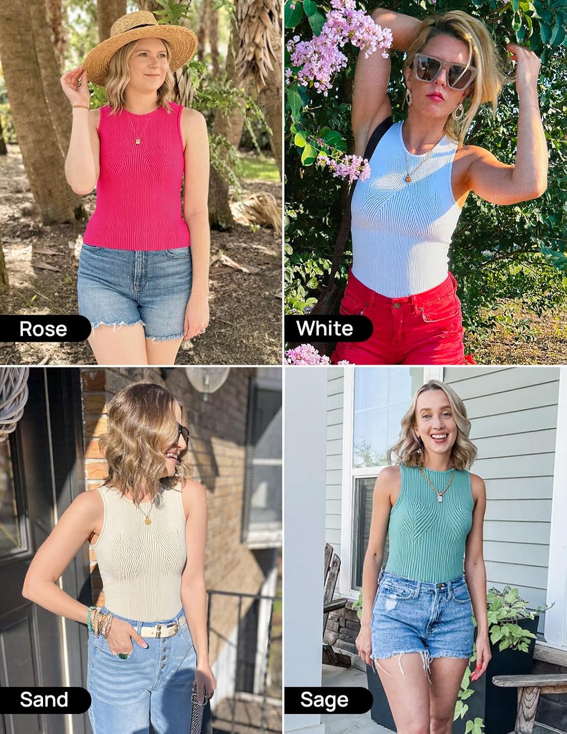 Features: Sleeveless tank tops, crewneck, solid color, ribbed knit texture, racerback, tight fit, casual and sexy cami tank top. This basic tank top is made of soft, stretchy knit fabric that is lightweight and breathable.