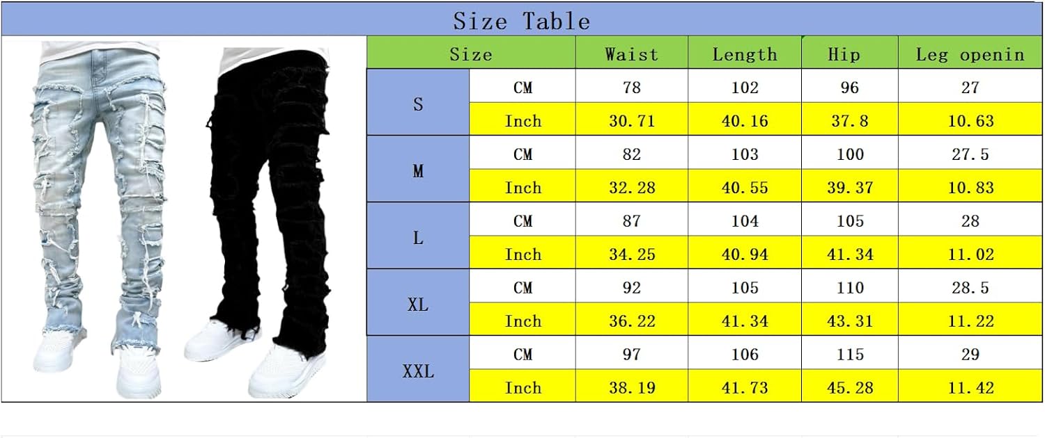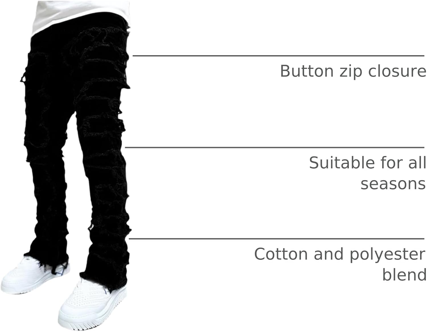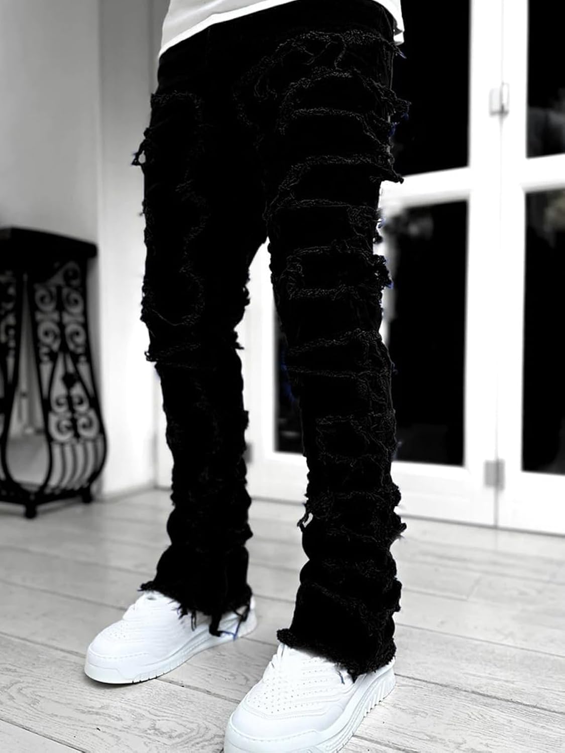 Stacked Jeans Men Skinny Ripped Jeans Slim Fit Denim Pants Y2K Goth Harajuku Emo Jeans Trouser