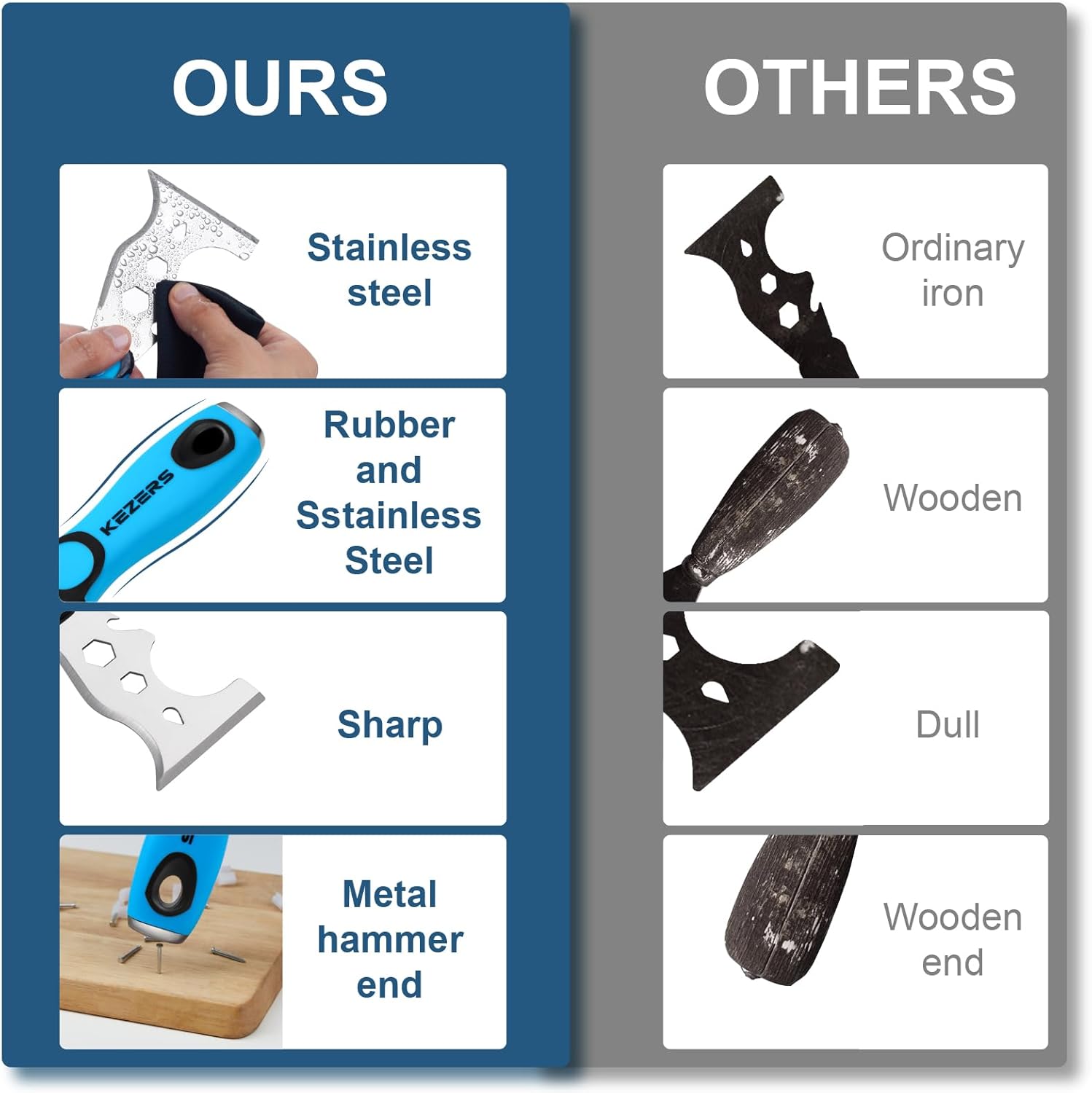 KEZERS 13-In-1 Painter’s Tool, Stainless Steel Putty Knife Scraper, Paint Scraper Tool for Painting & Wood with Metal Hamm...