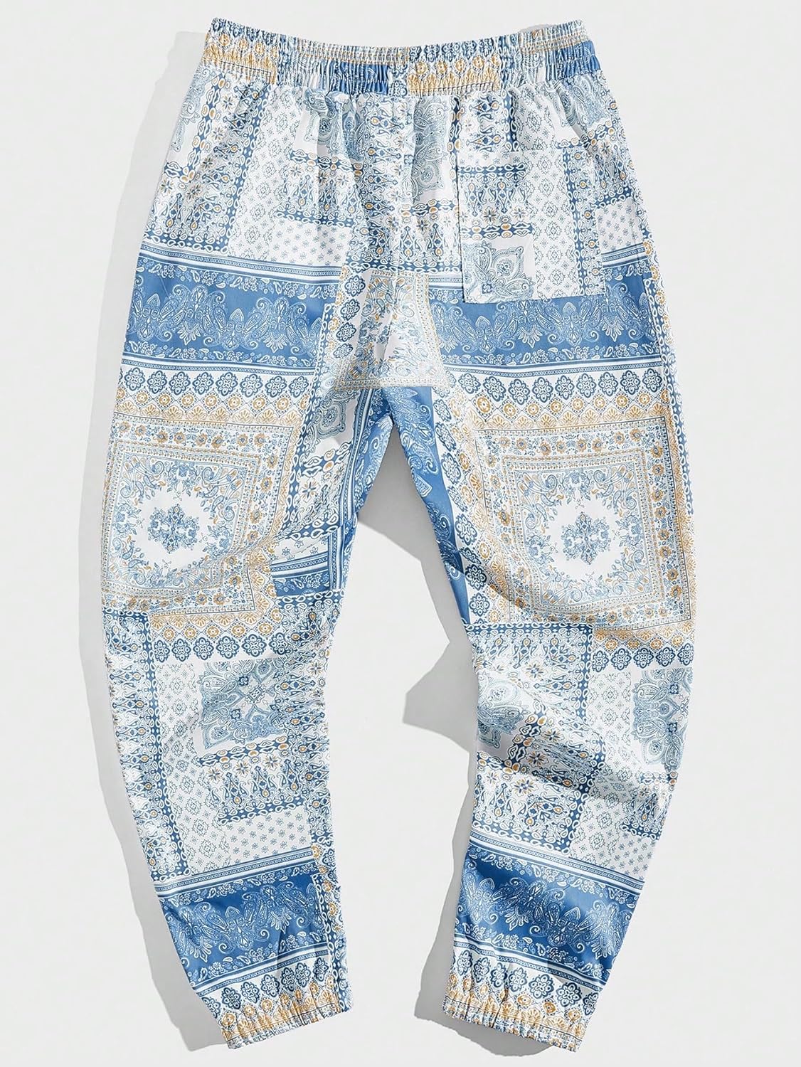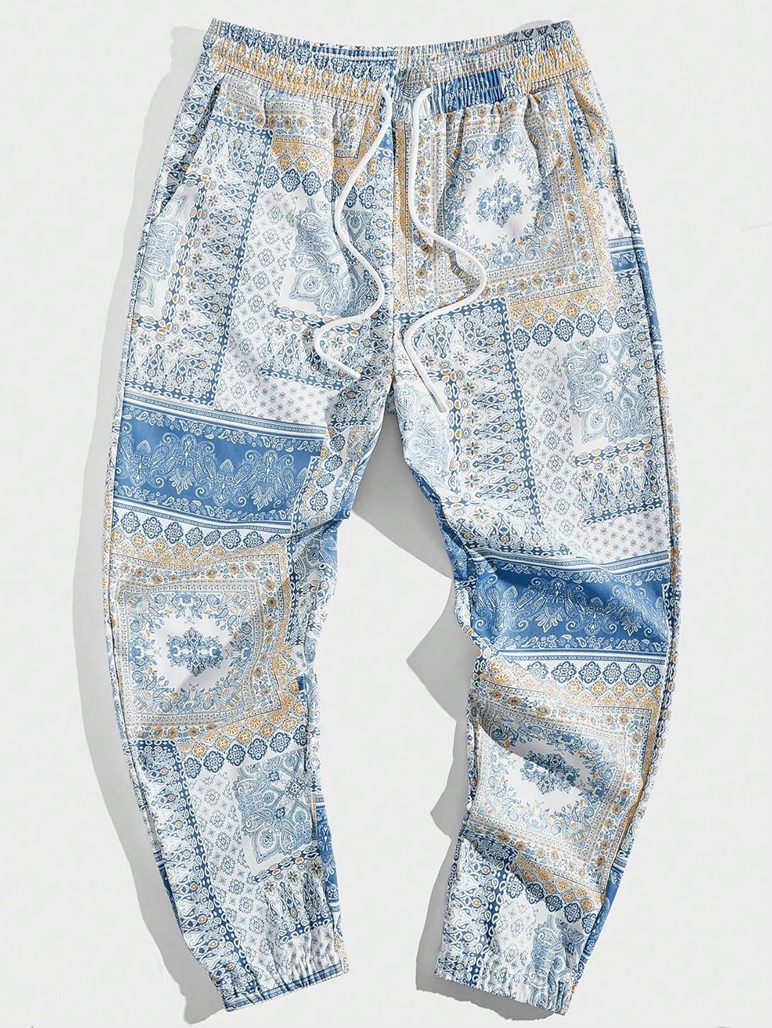 WDIRARA Men's Floral Letter Graphic Print Drawstring Waist Tie Front Sweatpants