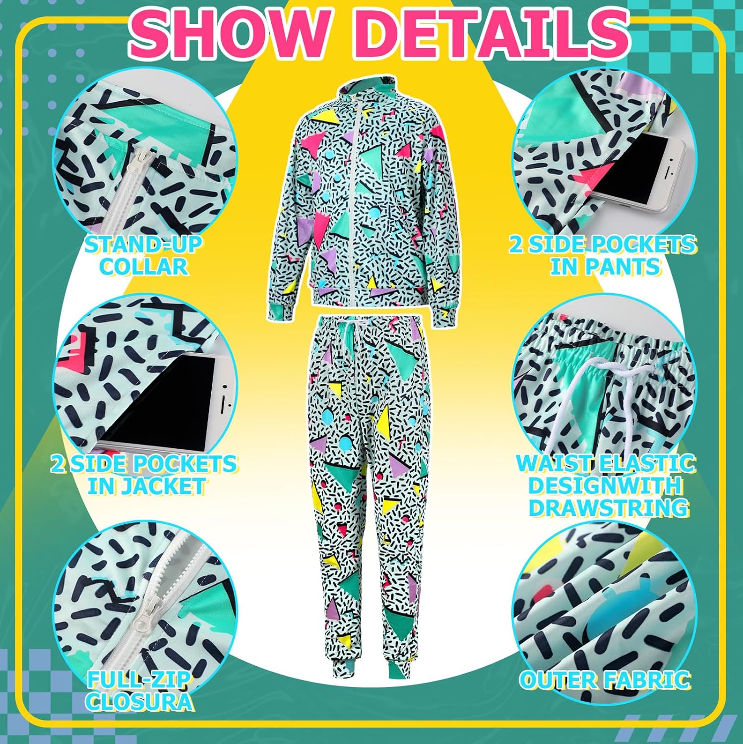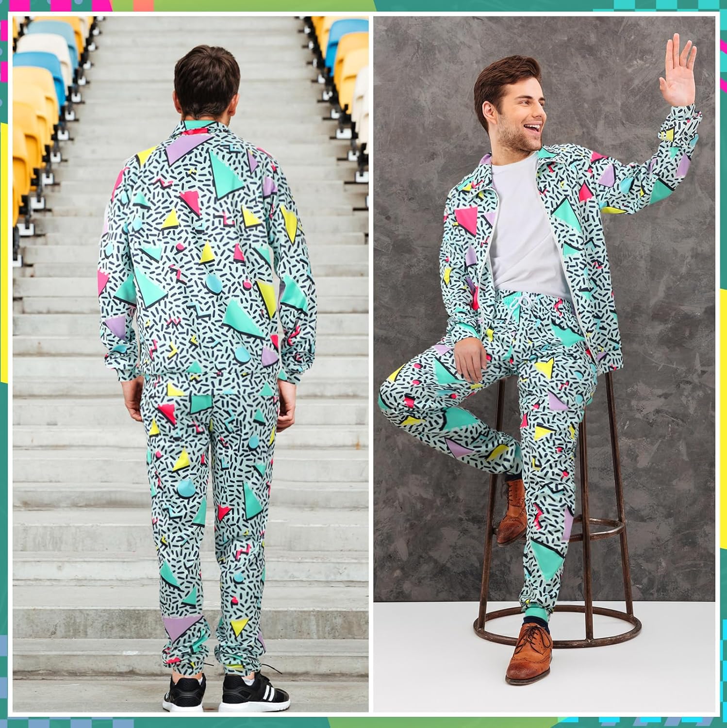 Package Includes: the 80s outfit for men consists of 1 jacket and 1 pair of pants, designed with an elastic rope and classic patterns; The vintage style will make you more attractive and charming in the crowd