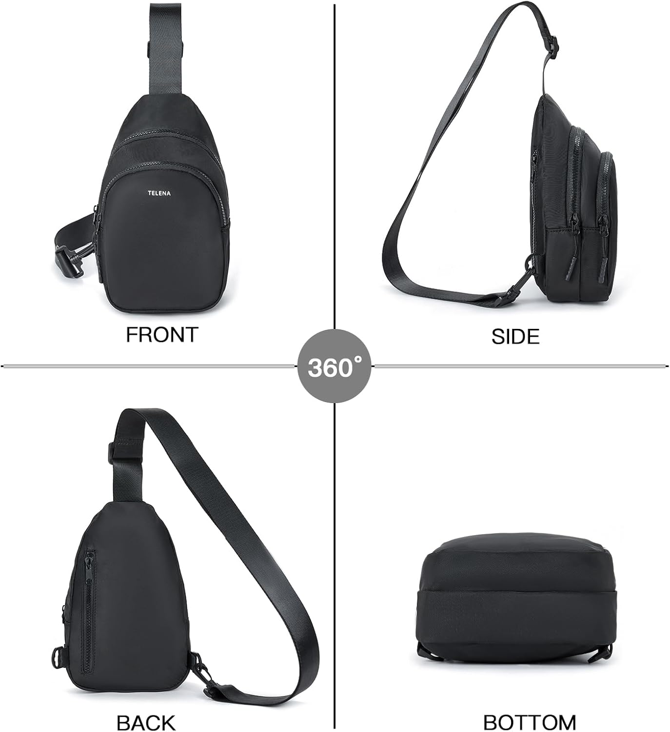 Durable Material: Telena sling bag is made of premium fabric, which exemplifies durability with its water-resistant and scratch-resistant properties. The smooth and sturdy zipper also making it effortlessly easy to maintain and long time to use