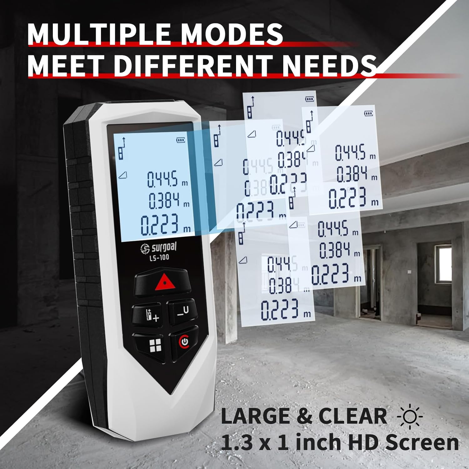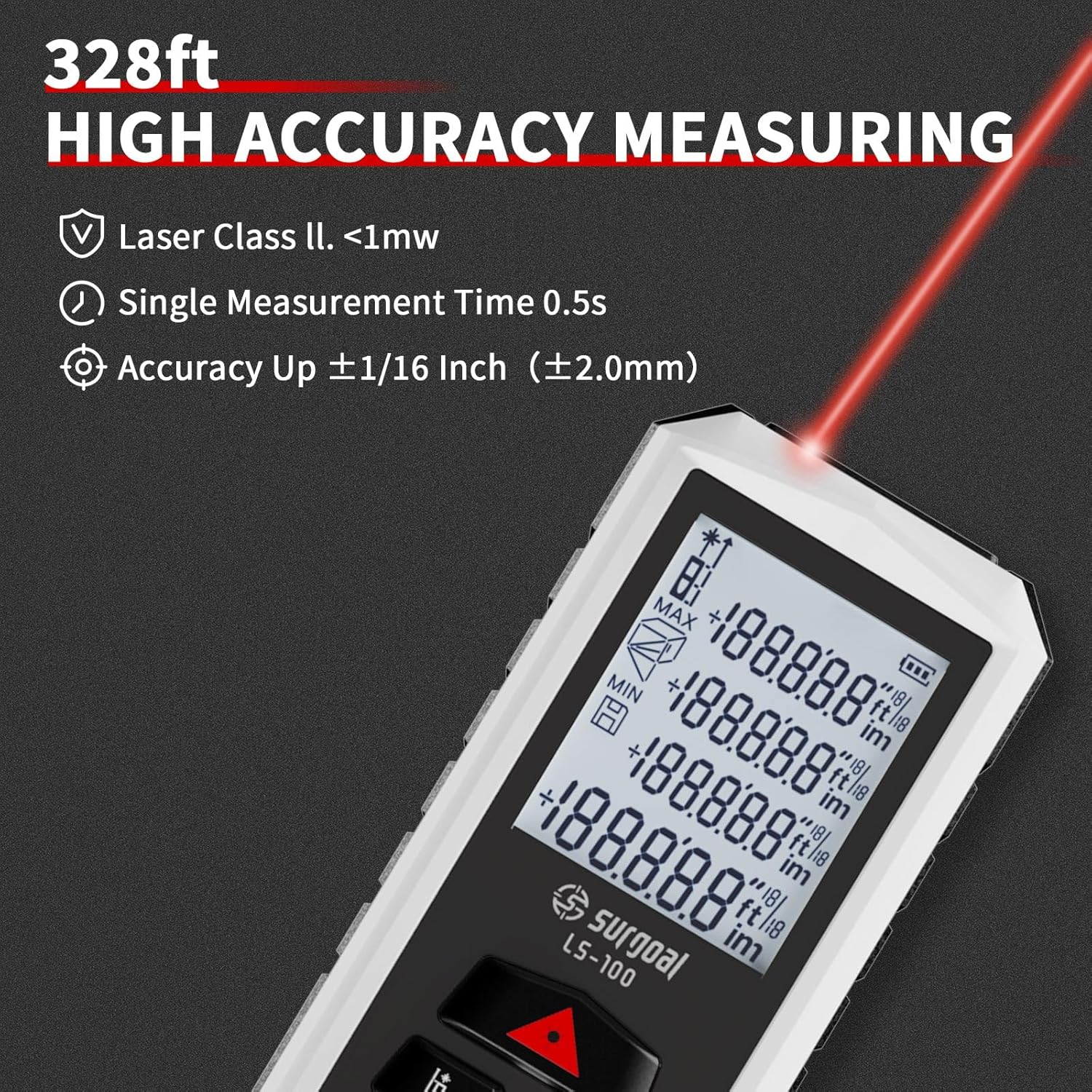 Laser Distance Meter 328ft Digital Laser Measuring Tool with LCD Backlit Display, Pythagorean Mode, Area & Volume Calculat...