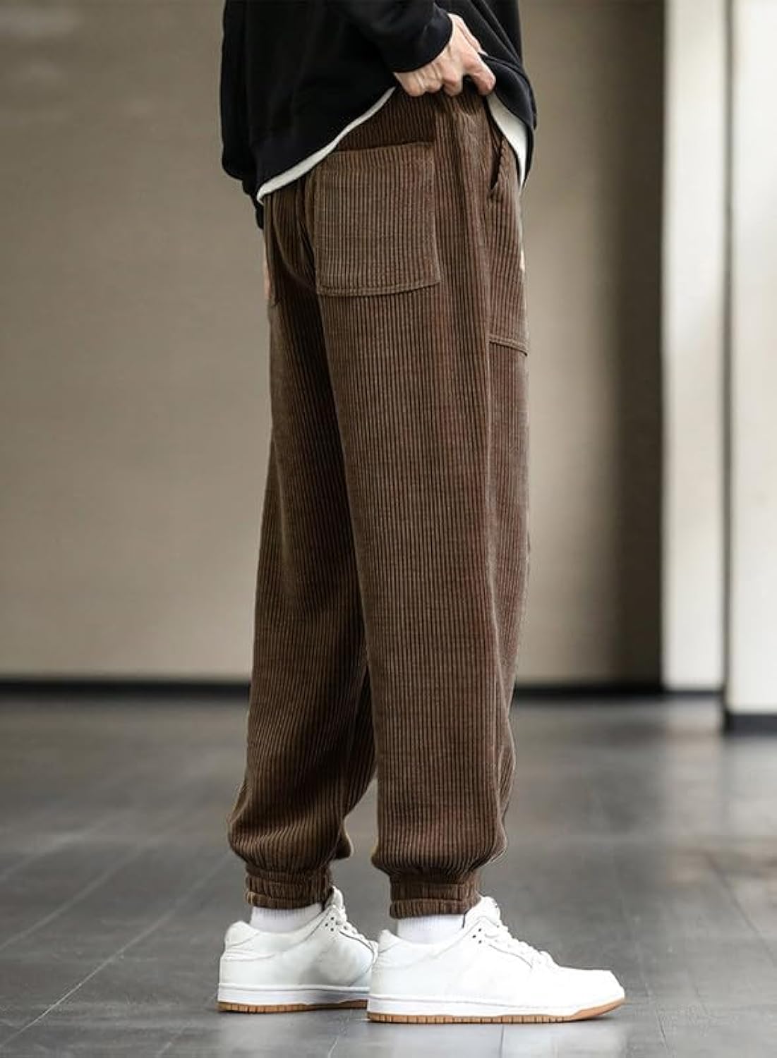 Loose Fit Design: These baggy corduroy joggers pants for man feature a drawstring, elastic waist, and tapered fit for a laid-back yet stylish look. Lightweight, breathable, and durable, they are perfect for an urban, active lifestyle. Stay comfy and stylish with these trendy joggers.