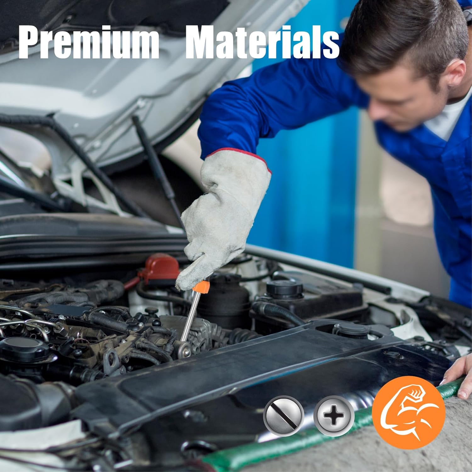 Premium material:Magnetic screwdriver set is made of premium materials chromium molybdenum vanadium steel, for enhanced durability, rust resistant and anti-corrosion. it is corrosion-resistant and beautiful.Ergonomic non slip and soft handle, made of PP + TPR.
