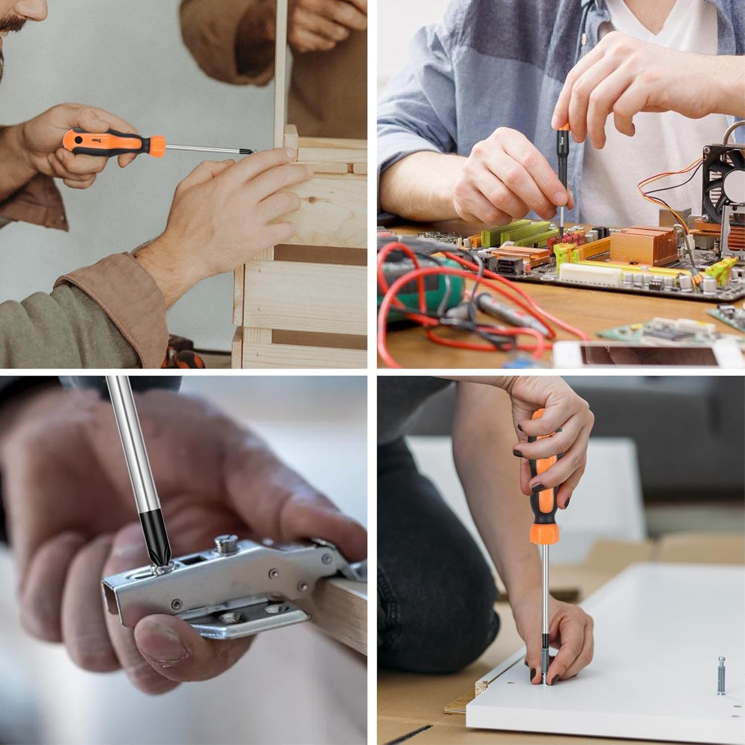 Magnetic head for easy assembling:Strong magnetic head chromium-vanadium steel screwdriver set with blue handle is the perfect set . Screwdrivers strong magnetic tips to attract and lift screws, helping reduce dropped and lost fasteners. Each screwdriver features a magnetic tip that securely holds fasteners in place .Use for anyone who wants a high-quality and versatile set of screwdrivers.