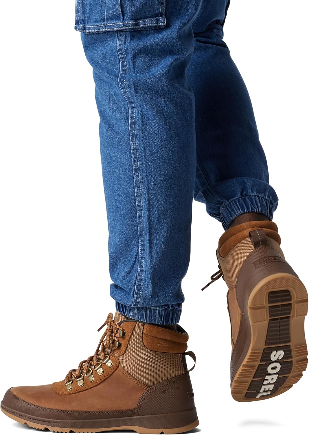 Outdoor Boots for Men: This waterproof hiker's boot with laces allows you to adjust the tightness for a secure feel; the work boots feature a molded rubber outsole