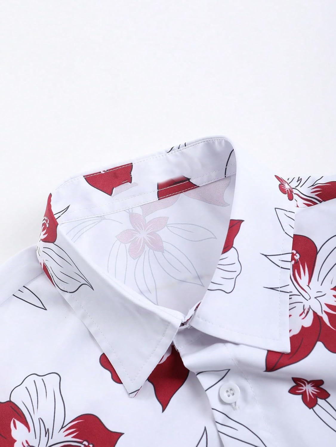 GORGLITTER Men's Vacation Beach Outfits 2 Piece Shorts Set Floral Hawaiian Button Down Shirt and Shorts