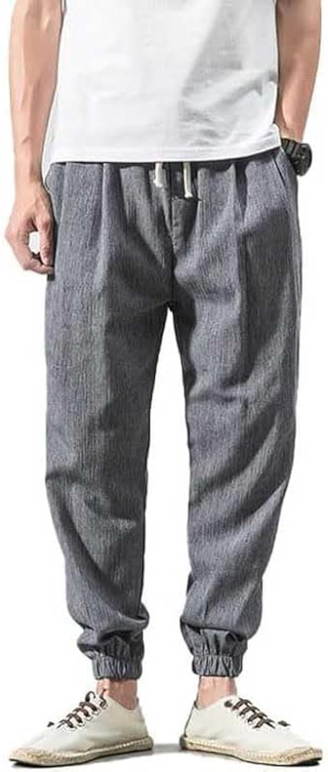 TOQVTOO Casual Pants for Men Linen Japanese Pants Cotton Elastic Waist Comfy Beach