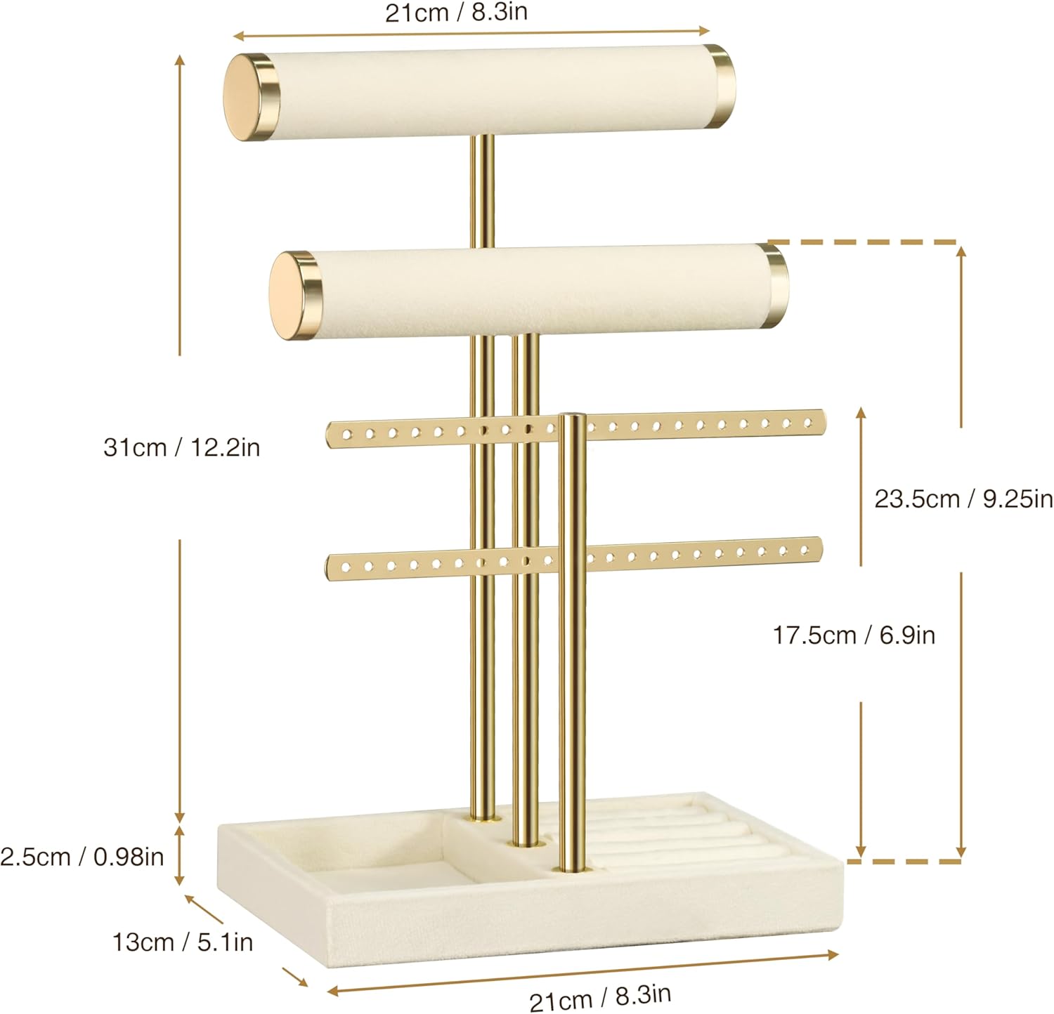 【A-grade Velvet】 : Crafted from high quality A-grade Beige velvet and gold metal, the bracelet holder will make your jewelry look better gorgeous and protect your jewelry from any damage, scratches or wear.