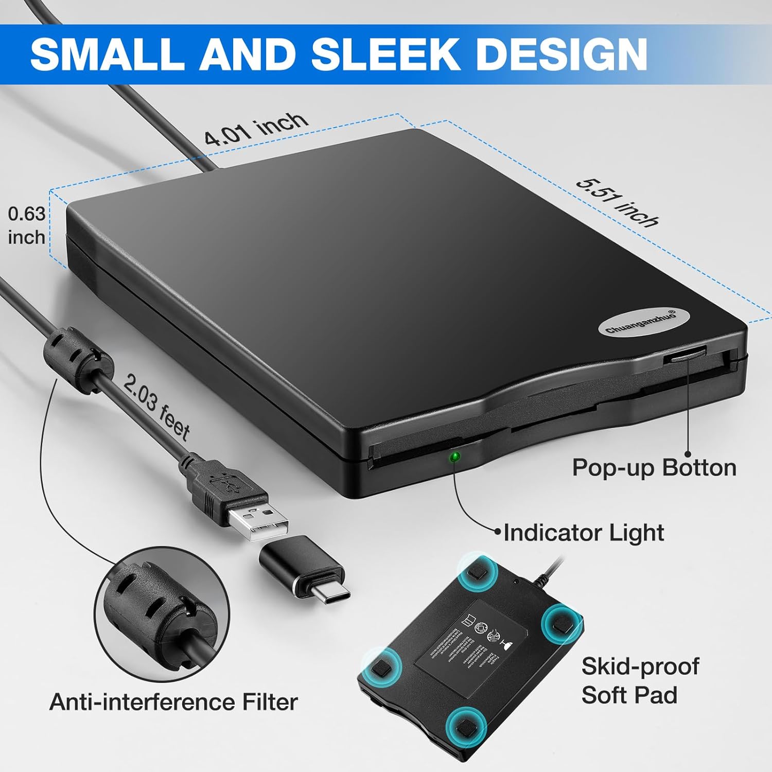 Chuanganzhuo Floppy Disk Reader, 3.5 inch USB Type A&C External Floppy Disk Drive, 3 1/2 Floppy Disc Reader for PC,Laptop&...