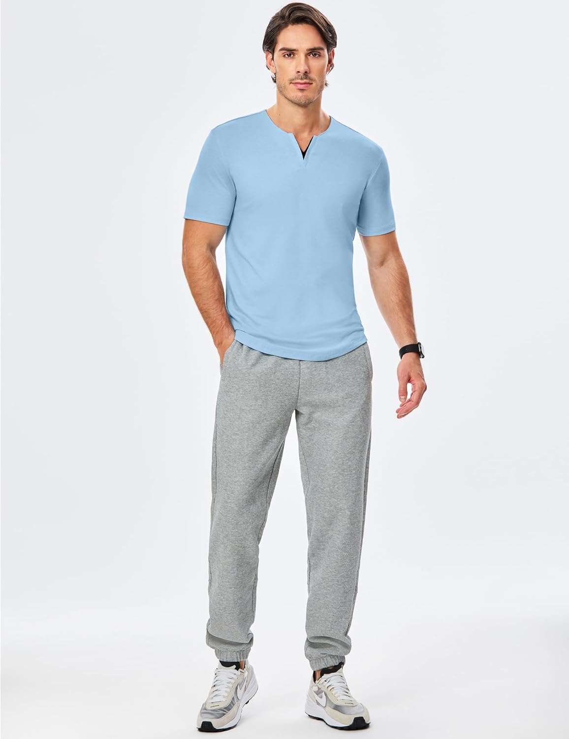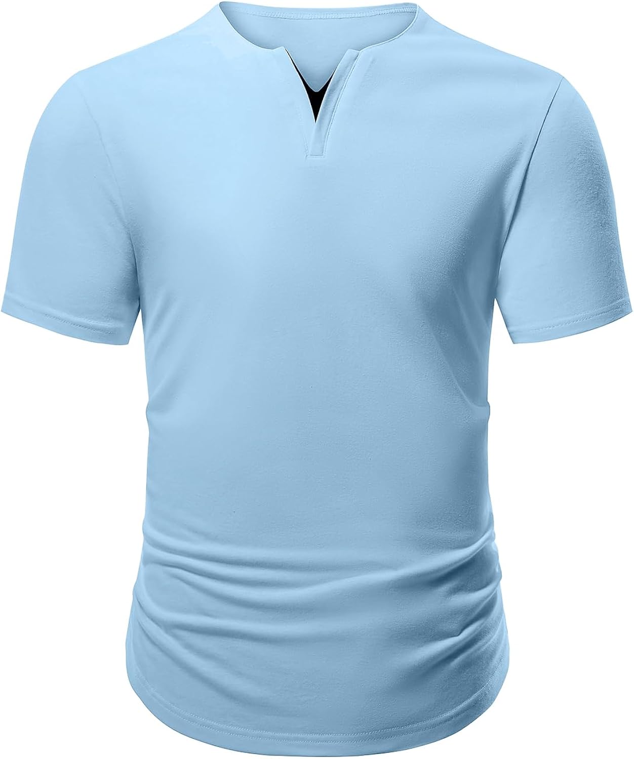 Slim Fit Design: Men's henley shirt, Henley style, solid color, V-neck, short sleeves, slim longline cut, simple and fashionable. The unique front contrasting V-neck design, making it stand out from other basic T-shirts, becomes a must-have fashion item for your wardrobe.
